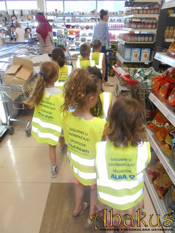 3. Kako bi djeca usvojila pravila ponašanja u prodavnici sa tetama i učiteljicama su posjetili supermarket „Bingo“. Upoznali su se sa djelatnošću trgovine, zaposlenicima, naučili kako se pravilno ponaša u prodavnici, kako se plaća i kreće prodavnicom.