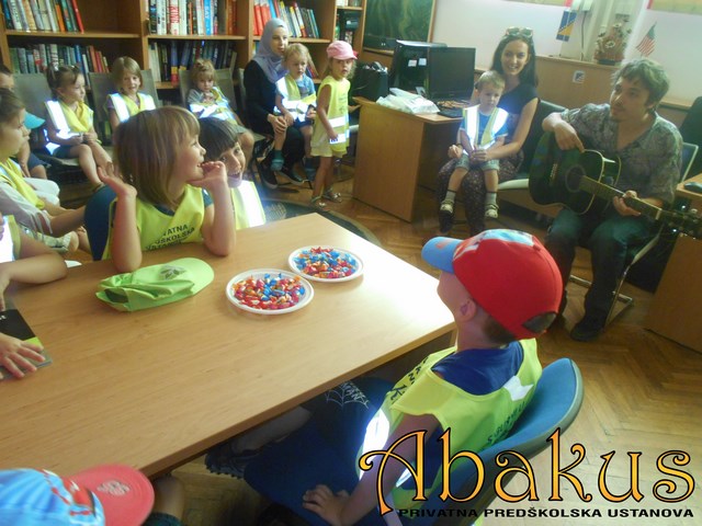 2. U Općoj biblioteci Zenica predškolci i školarci su uživali gledajući mnoštvo enciklopedija, zanimljivih, zabavnih i edukativnih knjiga, te na taj način razvijali ljubav prema čitanju različitih sadržaja. Naučili su kako se knjige slažu i arhiviraju. Na kraju ih je, sa nekoliko pjesama i svirku na gitari, obradovao zaposlenik biblioteke.