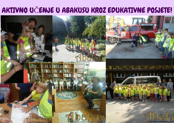 U skladu sa navedenim u „Abakusu“ u toku cijele godine, a posebno za vrijeme ljeta organiziramo edukativne posjete različitim instutucijama, firmama i organizacijama, kako bi djeca metodama aktivnog učenja, na neposredan način usvajala praktična znanja i iskustva.