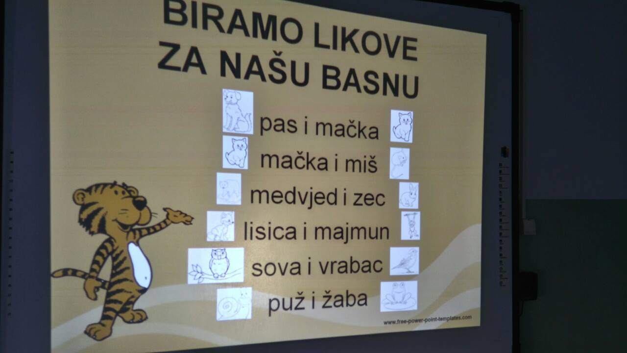 Kroz igru, pjesmu, slike i boje učenici su ispričali četiri basne (Pas i mačka, Mačka i miš, Sova i vrabac, Medvjed i zec) i zaključili da sva djeca, baš kao i sve životinje, mogu i trebaju bez obzira na različitosti uvijek biti prijatelji, družiti se, zajedno se igrati i pomagati jedni drugima.