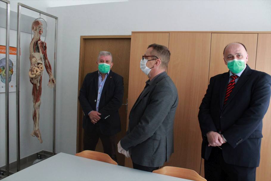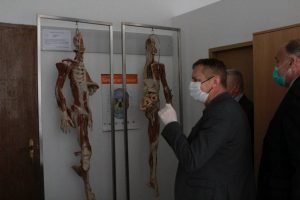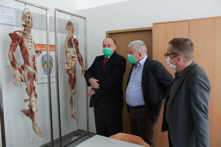 Medicinski fakultet Univerziteta u Zenici danas su posjetili gospodin Adnan Jupić, ministar zdravstva ZDK i gospodin Spahija Kozlić, ministar za obrazovanje, nauku, kulturu i sport ZDK, te u pratnji rektora prof.dr.sc. Damira Kukića, dekana Medicinskog fakulteta prof.dr.sc. Haruna Hodžića, te prorektora Univerziteta u Zenici i zaposlenika i predstavnika studenata Medicinskog fakulteta, obišli prostrije Fakulteta u kojima su smještene uređene i opremljene laboratorije za anatomiju i histologiju.