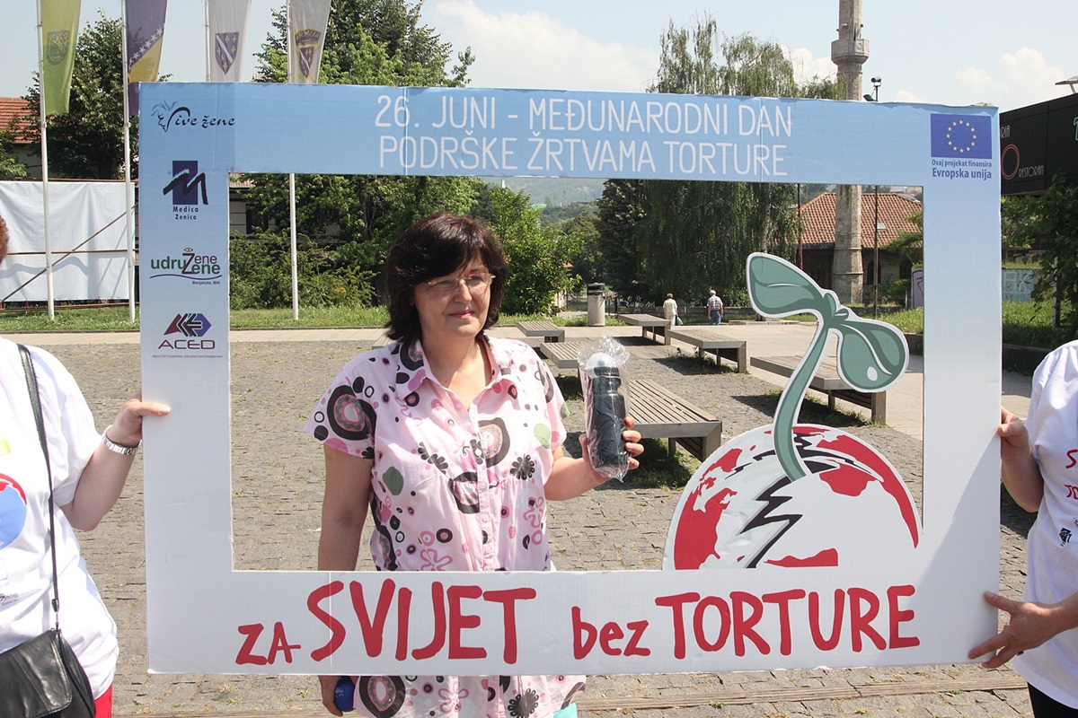 Aktivnosti obilježavanja 26.juna Međunarodnog dana podrške žrtvama torture provode se u okviru projekta „Osiguranje pristupa pravdi za svjedoke/žrtve kroz jačanje postojećih i uspostavljanje novih mreža podrške svjedocima diljem BiH“ koji realiziraju udruženja Vive žene Tuzla, Medica Zenica, Udružene žene Banja Luka i ACED Banja Luka, uz finansijsku podršku Evropske unije.