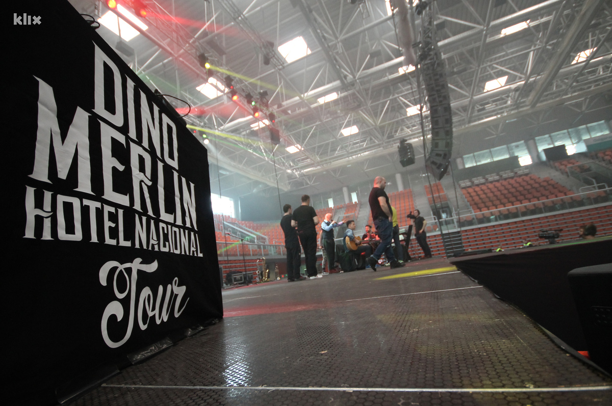 Foto: Merlin održao probu u Areni – Dino Merlin sa svojom ekipom danas je u poslijepodnevnim satima u Gradskoj areni u Zenici održao zvučnu probu pred večerašnji koncert u Zenici koji će početi u 20 sati.