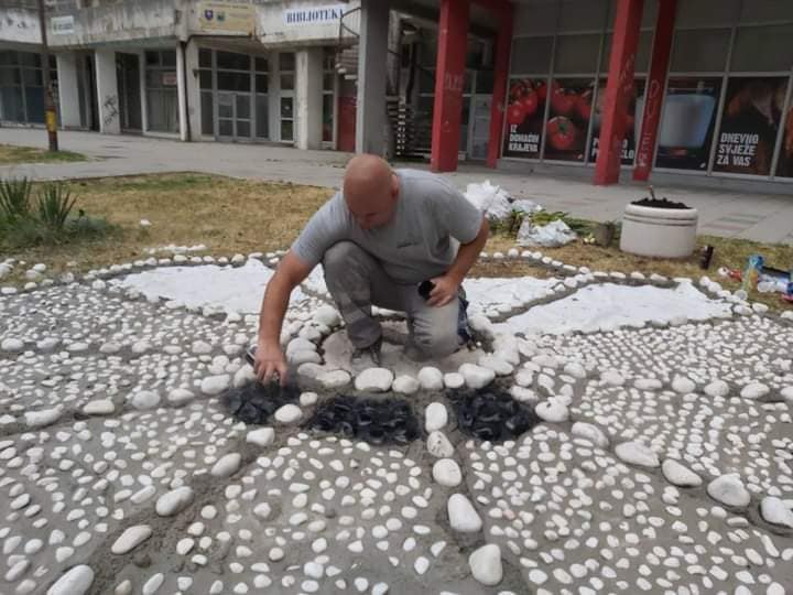 FOTO: Mještani Radakova u parku napravili spomen obilježje za žrtve Srebrenice- Na inicijativu predsjednika MZ Novo Radakovo i jednog od mještanina, Adi Salčinovića i Dalibora Duspare, te pomoć donatora, grupa građana u mjesnoj zajednici Novo Radakovo odlučila se da napravi spomen obilježje za žrtve Srebrenice-„Cvijet Srebrenice“.