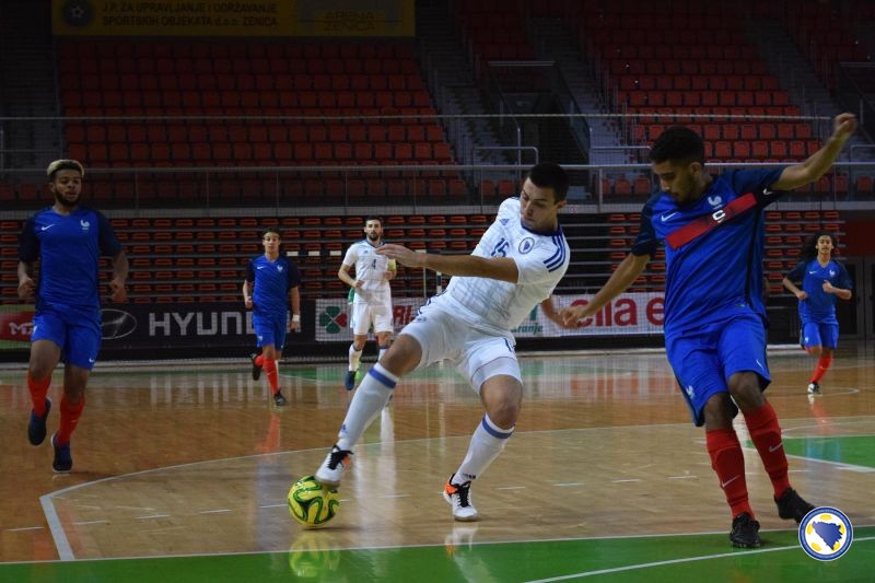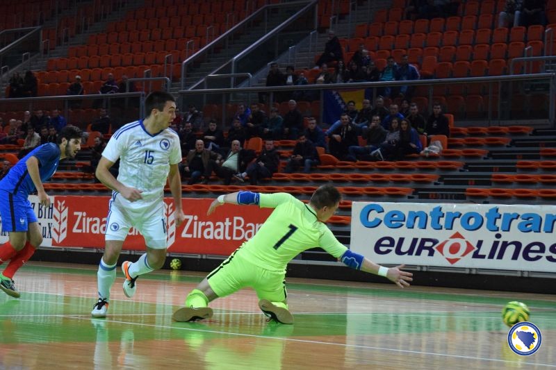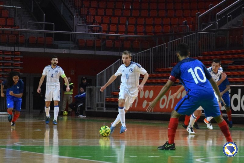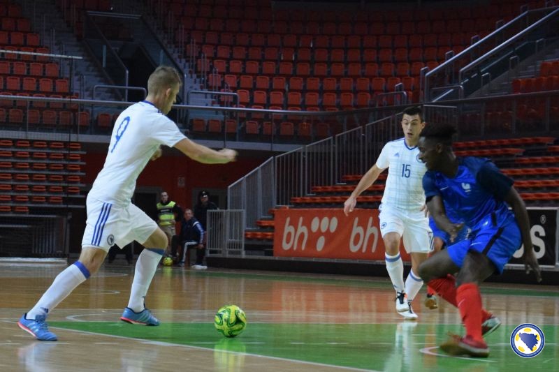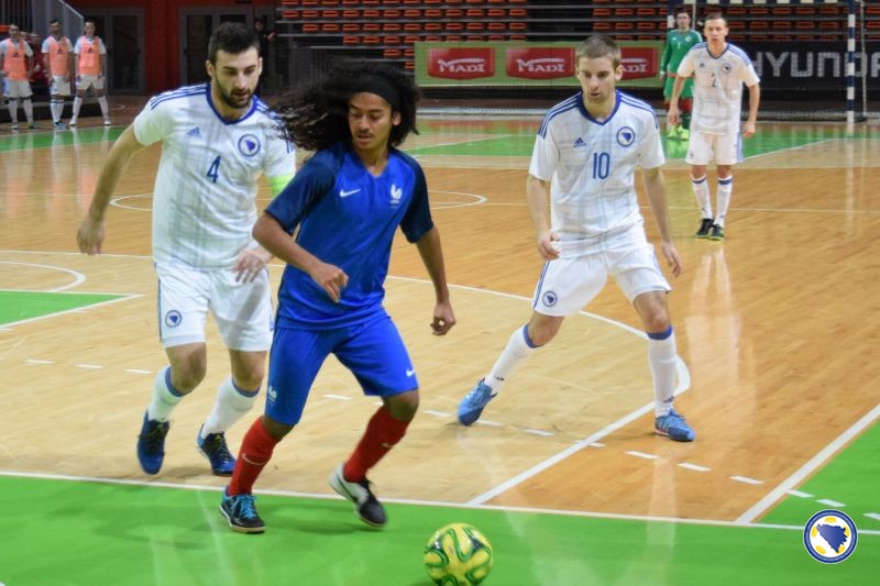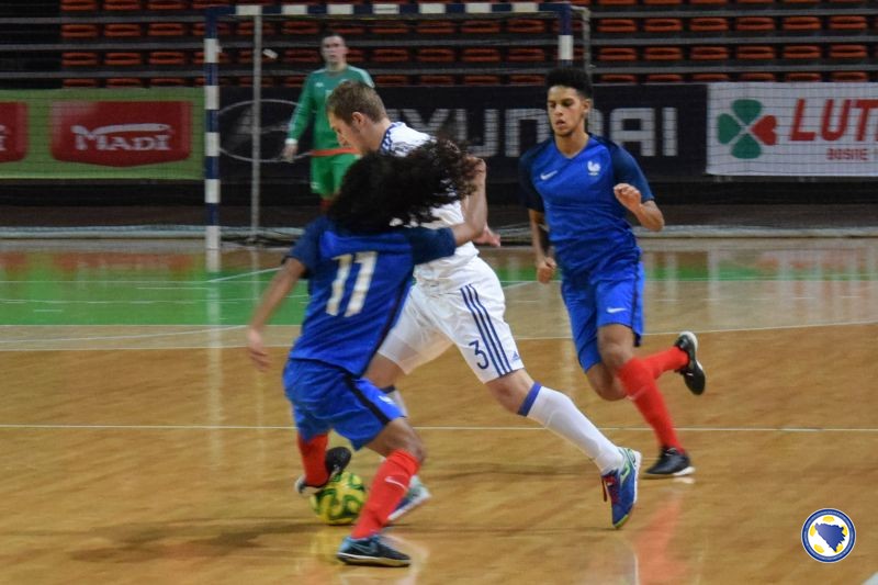 FOTO: Mlada futsal reprezentacija BiH bolja od vršnjaka iz Francuske 7:1 – Mlada futsal selekcija Bosne i Hercegovine pobijedila je večeras u prijateljskom meču u Zenici vršnjake iz Francuske rezultatom 7:1.¸Bh tim je do prednosti došao u 2′, a strijelac je bio Stefan Jokić. Samo dvije minute poslije prednost je udvostručena kada je kapiten Marijo Aladžić odličo šutirao sa distance i pogodio mrežu Daurellea. Bh tim je nastavio sa ofanzivnom igrom i u 5′ Miljan Gutić postiže gol za 3:0.