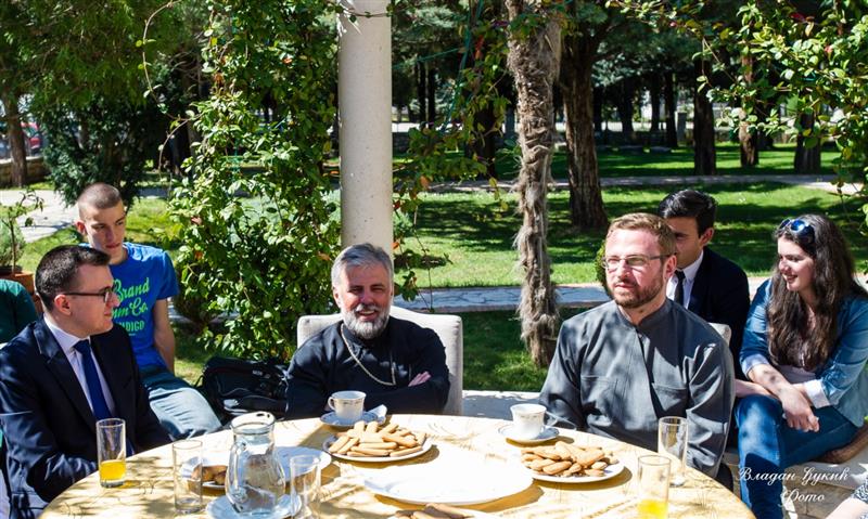 Njega je u ime svojih kolega i idejnog tvorca i organizatora ovog putovanja, sekretara OMS Zenica, gdina Kenana Hodžića, biranim riječima pozdravila gđica Merima, ističući značaj koji vladika ima u međureligskom dijalogu u BiH, te izrazila zahvalnost što svojim primjerom potiče mlade ljude na međusobnu saradnju i stvaralaštvo koje nadilazi vjerske, nacionalne, društvene i bilo koje druge razlike.