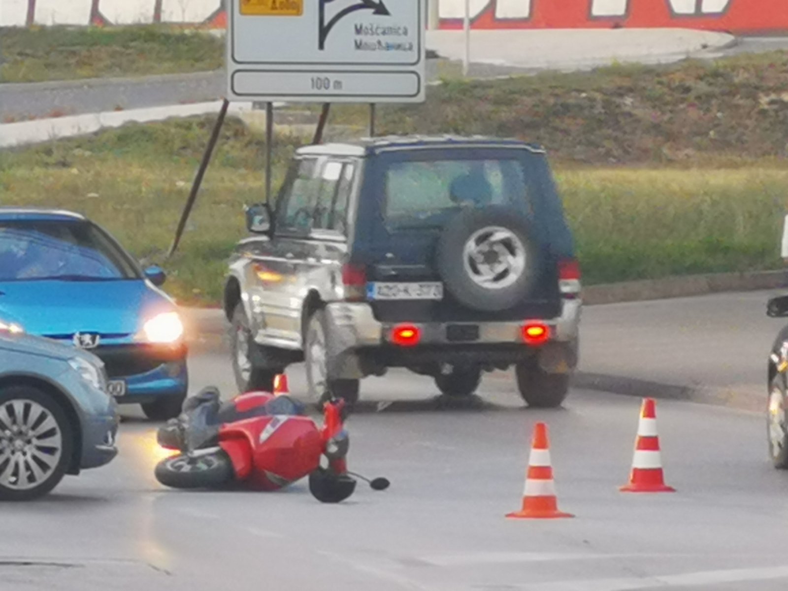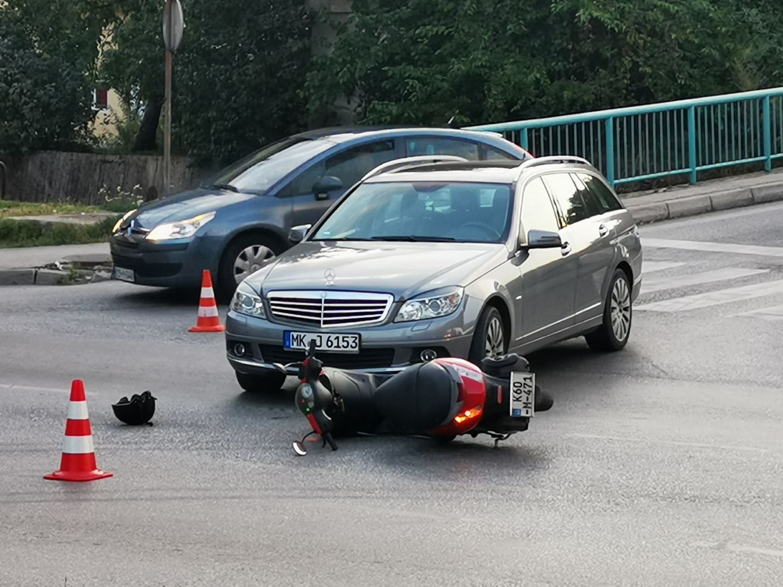 -Automobilom “Mercedes” upravljala je S. Z. (56) iz Žepča, a skuterom I. T. (24) iz Zenice. Motociklista je prebačen u Kantonalnu bolnicu Zenica, gdje su mu konstatirane lake tjelesne povrede, kažu u policiji. FOTO: B.I.