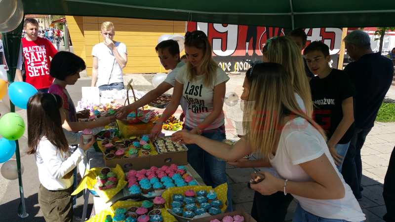 Foto: muffini za Mirzu – prikupljeno 1676,60 KM – Muffini za Mirzu – ispred RK Bosna u subotu u podne je organizirana (i traje do 17h) akcija humanitarne prodaje kolačića za našeg sugrađanina Mirzu Bjeloglavića.