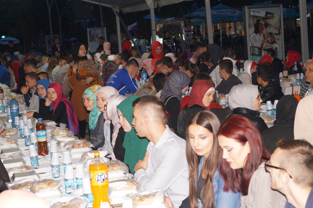 FOTO: Muftijstvo zeničko organizovalo iftar na otvorenom za 800 studenata i mladih – U okviru ramazanskih aktivnosti Muftijstva zeničkog, u petak 16. juna 2017. godine na Trgu Alije Izetbegovića u Zenici je organiziran iftar za 800 studenata i mladih sa područja Muftiluka zeničkog.
