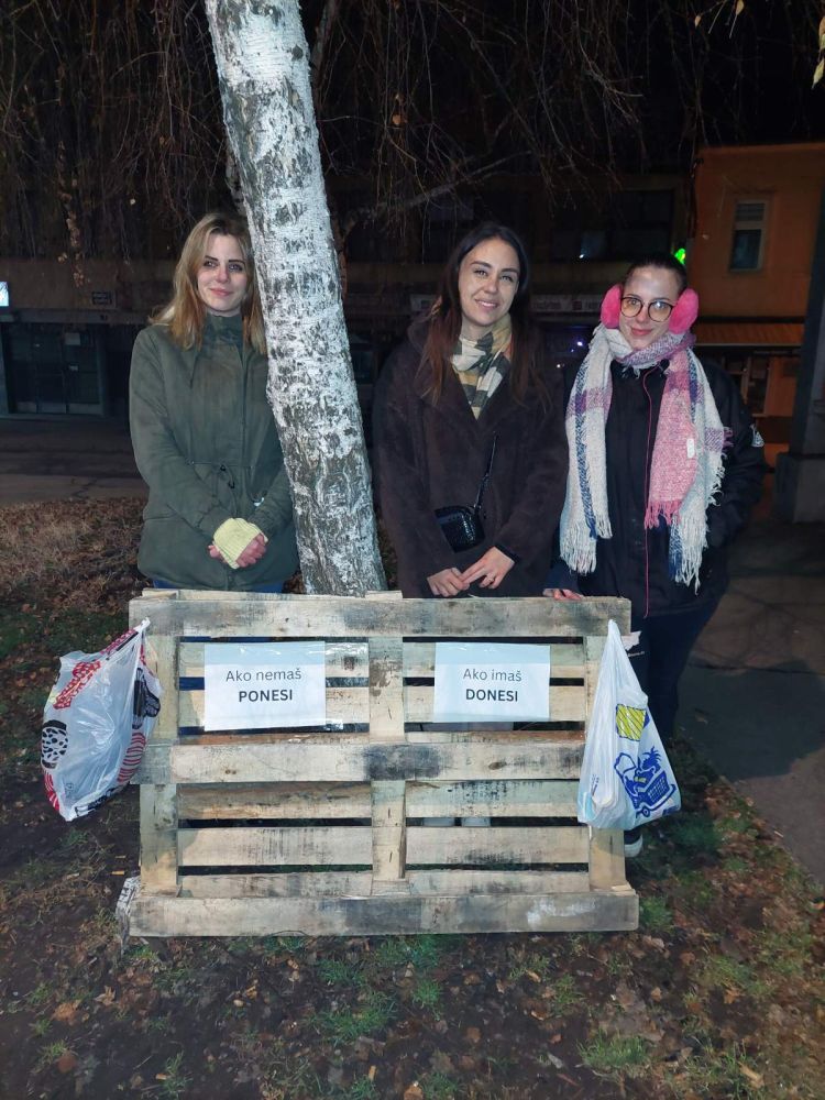 Nešto malo iza ponoći, grupa mladih aktivista, na čelu sa Mateom Šunjić-Antoliš, Medinom Juhić i Teom Čavalić, je u užem centru Zenice postavila palete sa dobrovoljnim prilogom.