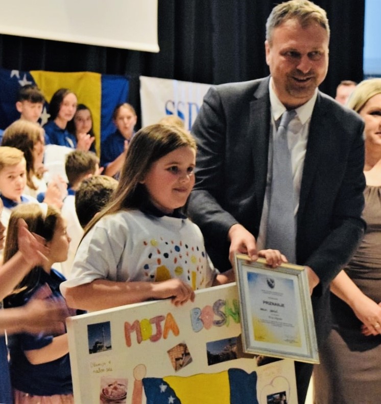 Amila Dergić je osvojila prvo mjesto u likovnim radovima na 21. Susretu Bosanskohercegovačkih Dopunskih Škola u Derbiju. Ima 10 godina i ona je djevojčica koja voli društvo i uživa u pohađanju bh.dopunske škole. Porijeklom je iz Kozarca, te voli ići u Bosnu svake godine. Upravo dok je boravila u BiH,dobila je inspiraciju da uradi likovni rad za kojeg je osvojila 1.mjesto. Uživala je u pripremama likovnog rada „Moja Bosna“ i često priča o svojoj nagradi. Svi je znaju kao pažljivu,zanimljivu i uvijek je spremna pomoći drugima.