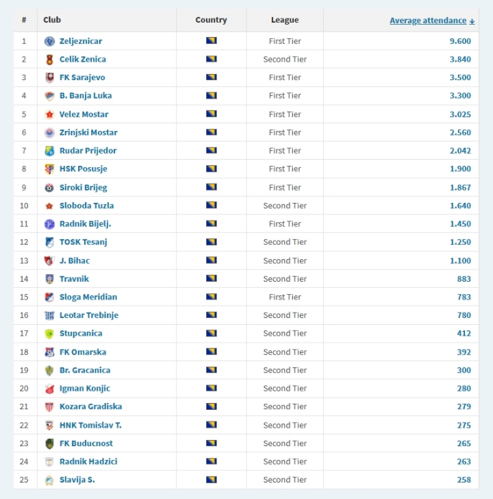 Stadion Bilino polje i navijači Čelika iz Zenice ponovo su dokazali da grad na Bosni ostaje jedno od središta sportskog entuzijazma u Bosni i Hercegovini. Prema podacima, zenički stadion zauzeo je drugo mjesto po posjećenosti u Bosni i Hercegovini i ušao među deset najposjećenijih stadiona u regionu, i to uprkos činjenici da Čelik trenutno nastupa u drugom rangu takmičenja.
