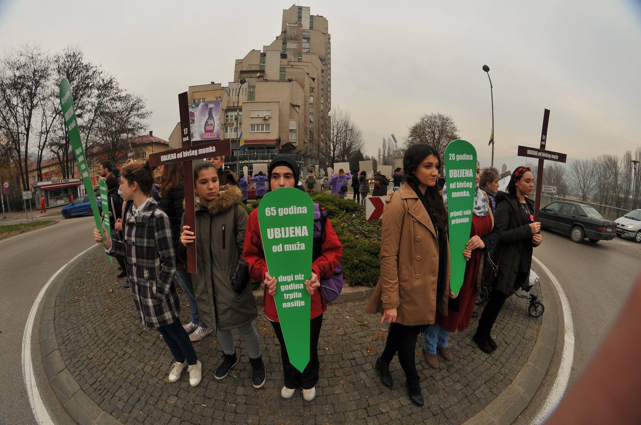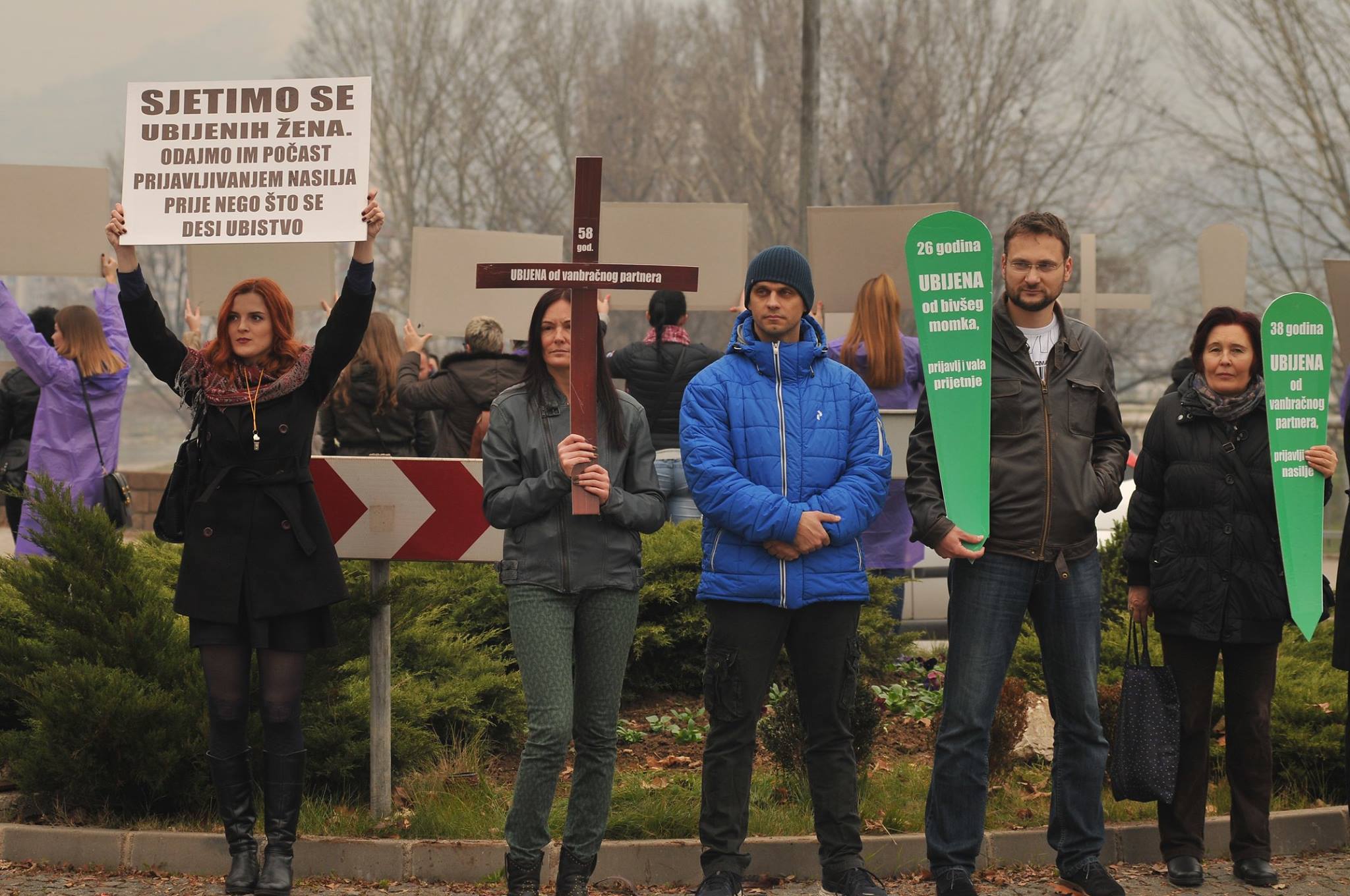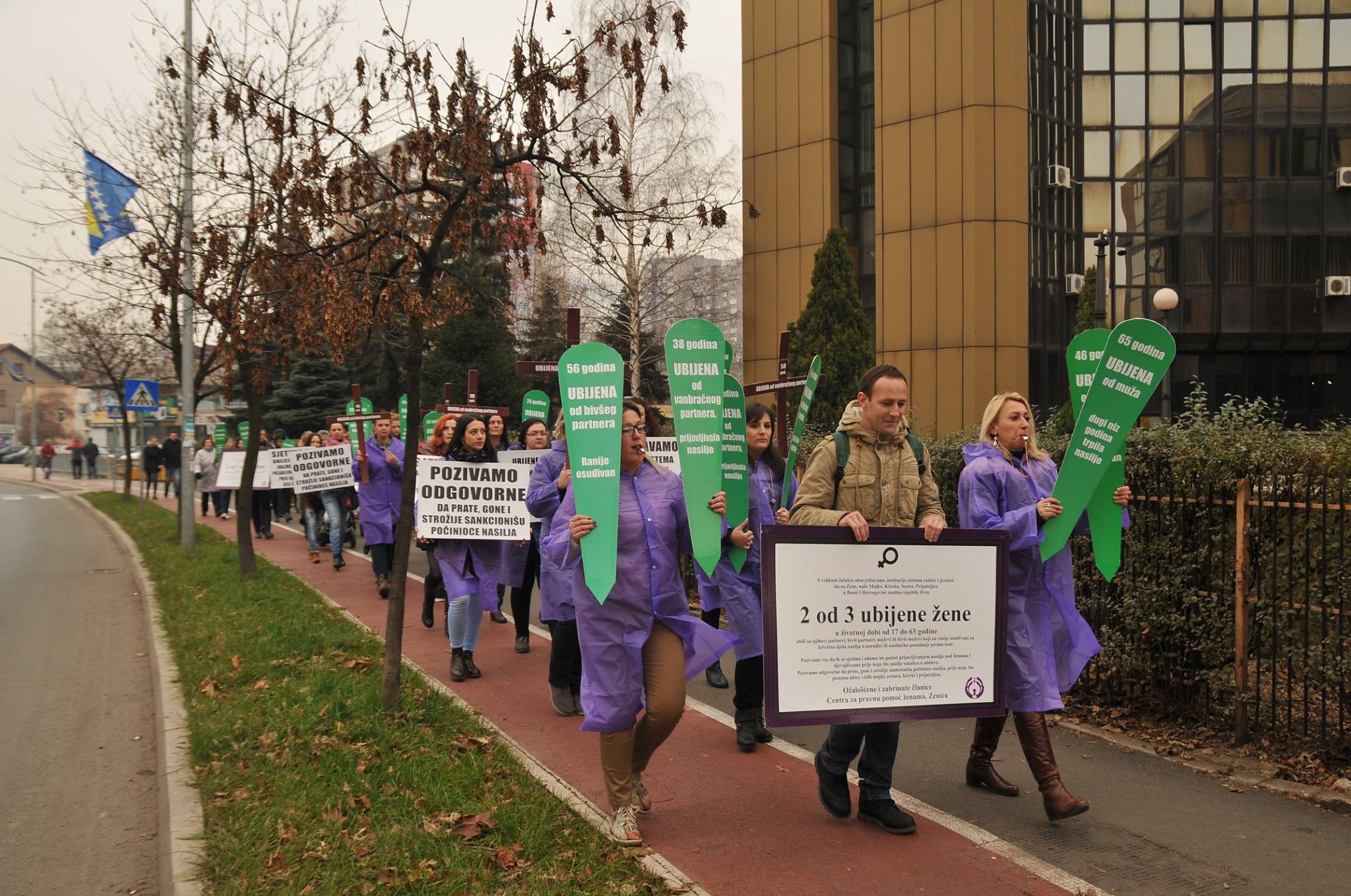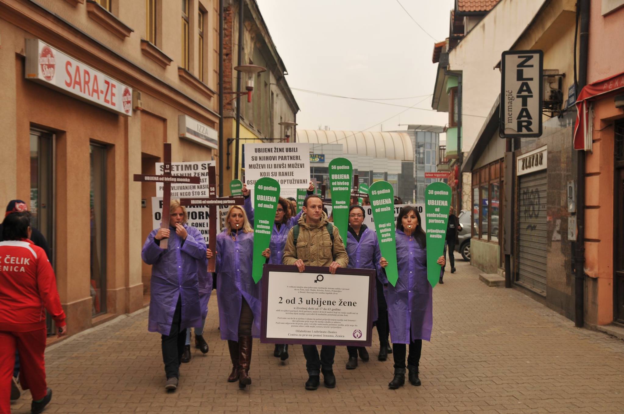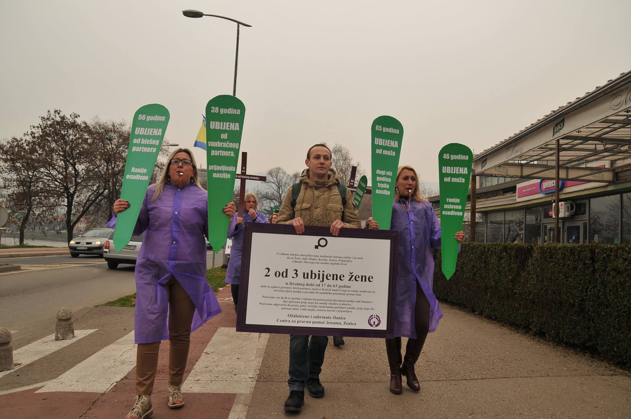 Članice Centra danas su prošetale centrom grada, u svojevrsnom performansu, držeći križeve i nišane “ubijenih žena” simbolično skrenule pažnju da nasilje nad ženama ne poznaje ni religiju, naciju ili bilo koju drugu različitost.