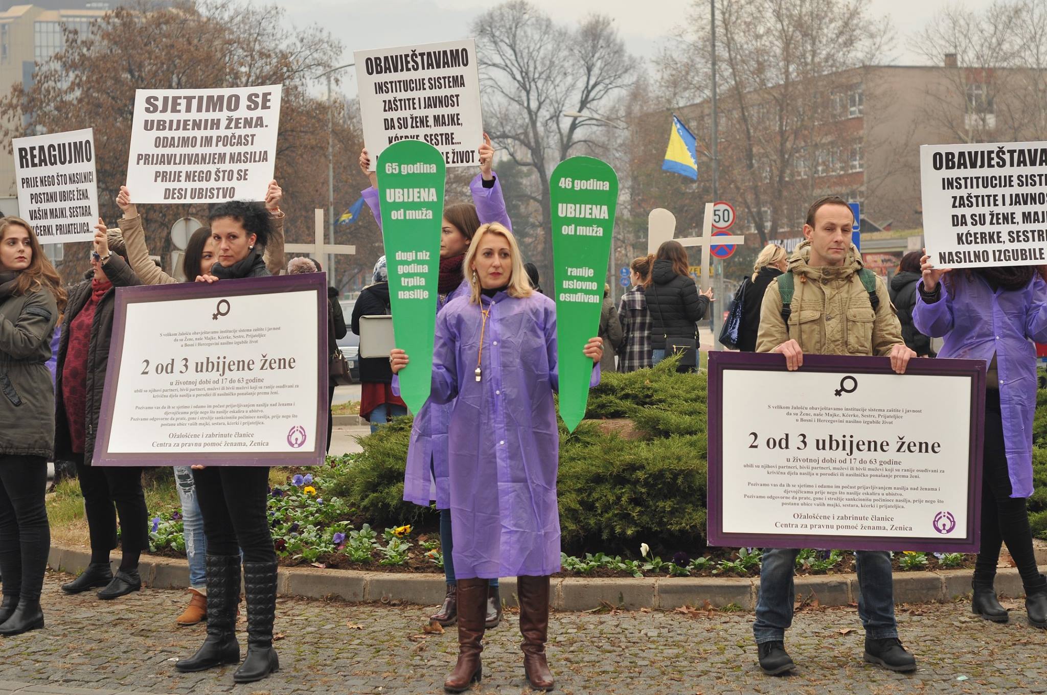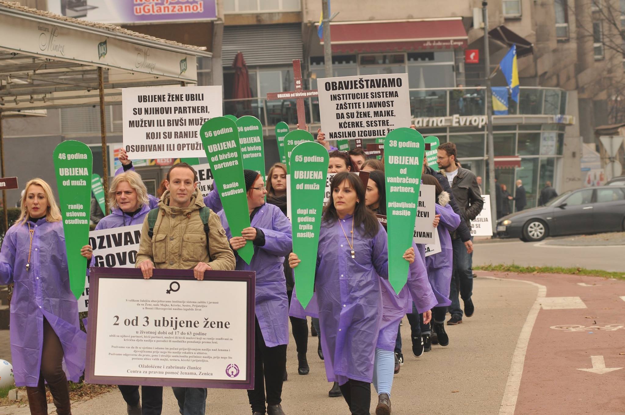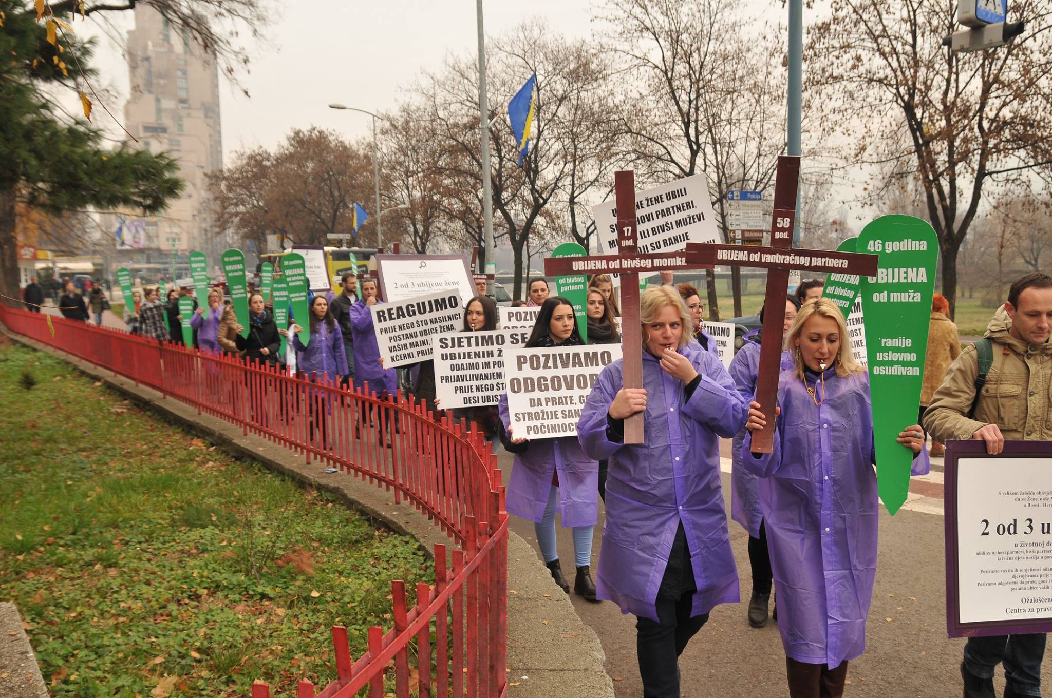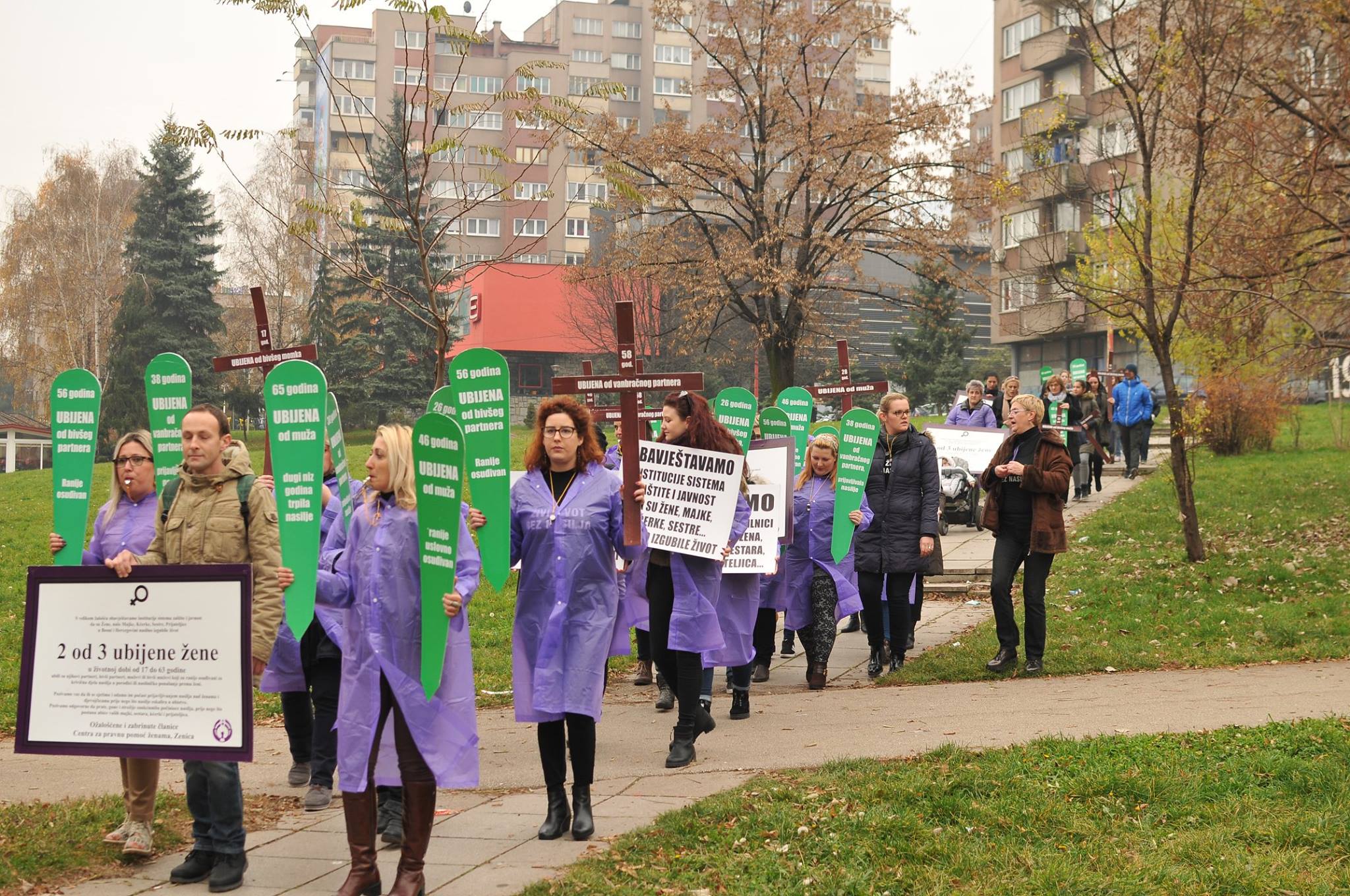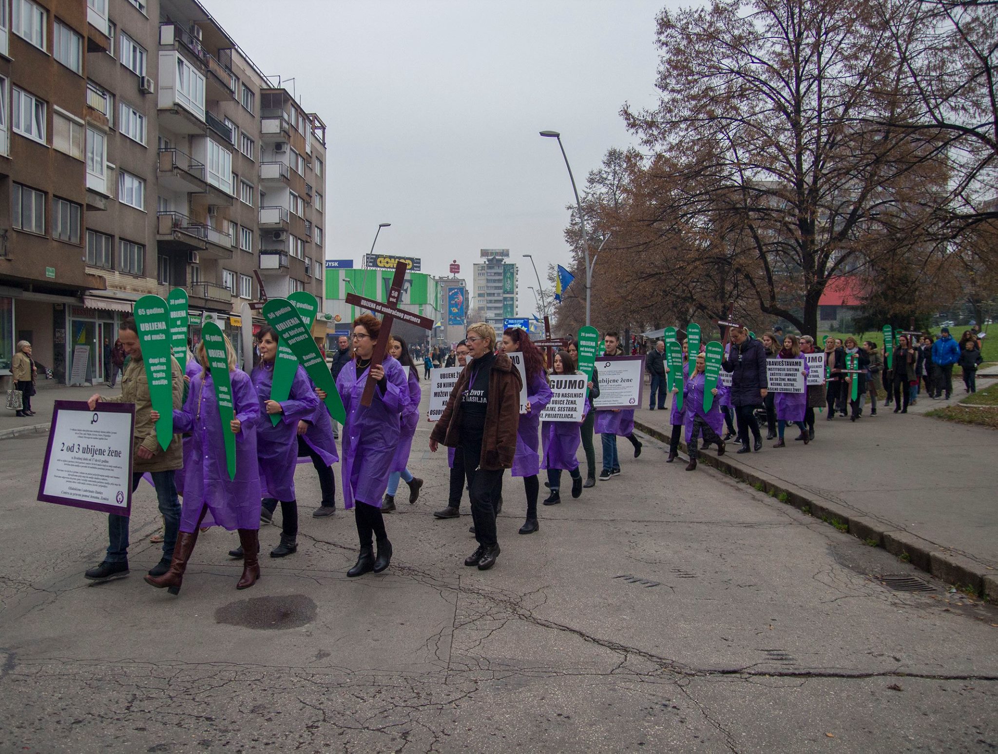 Članice Centra danas su prošetale centrom grada, u svojevrsnom performansu, držeći križeve i nišane “ubijenih žena” simbolično skrenule pažnju da nasilje nad ženama ne poznaje ni religiju, naciju ili bilo koju drugu različitost.