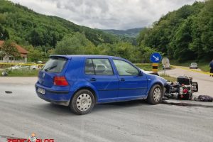 U nesreći su učestvovali automobil i motocikl, prilikom čega su povrijeđena oba vozača koja su prevezena na ukazivanje ljekarske pomoći u Kantonalnoj bolnici Zenica.