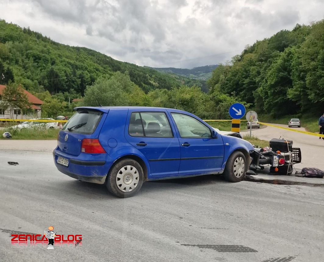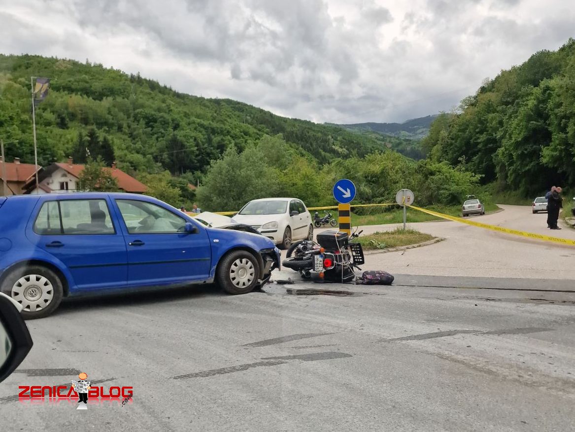 U nesreći su učestvovali automobil i motocikl, prilikom čega su povrijeđena oba vozača koja su prevezena na ukazivanje ljekarske pomoći u Kantonalnoj bolnici Zenica.