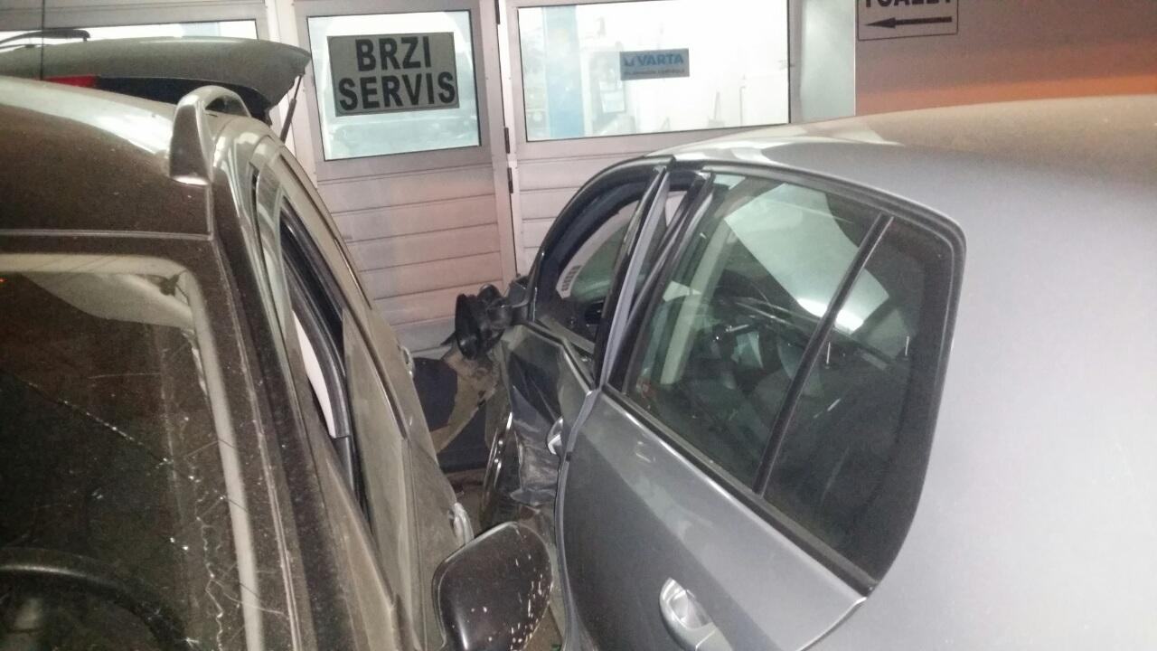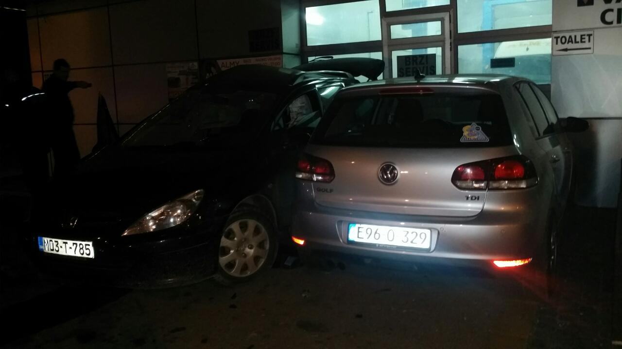 Foto: Nesreća na M17, “Pežo” se zabio u “Golfa”- Denis K. iz Zenice zadobio je lake tjelesne ozljede nakon što je izgubio kontrolu nad vozilom “pežo”. On je upravljajući vozilom na M17 prešao na drugu stranu, udario u stub rasvjete, saobraćajni znak, hidrant, te srušio još nekoliko panoa, prije nego se zabio u parkiranog “Golfa” kod servisa na Benzinskoj pumpi Almy BP2.
