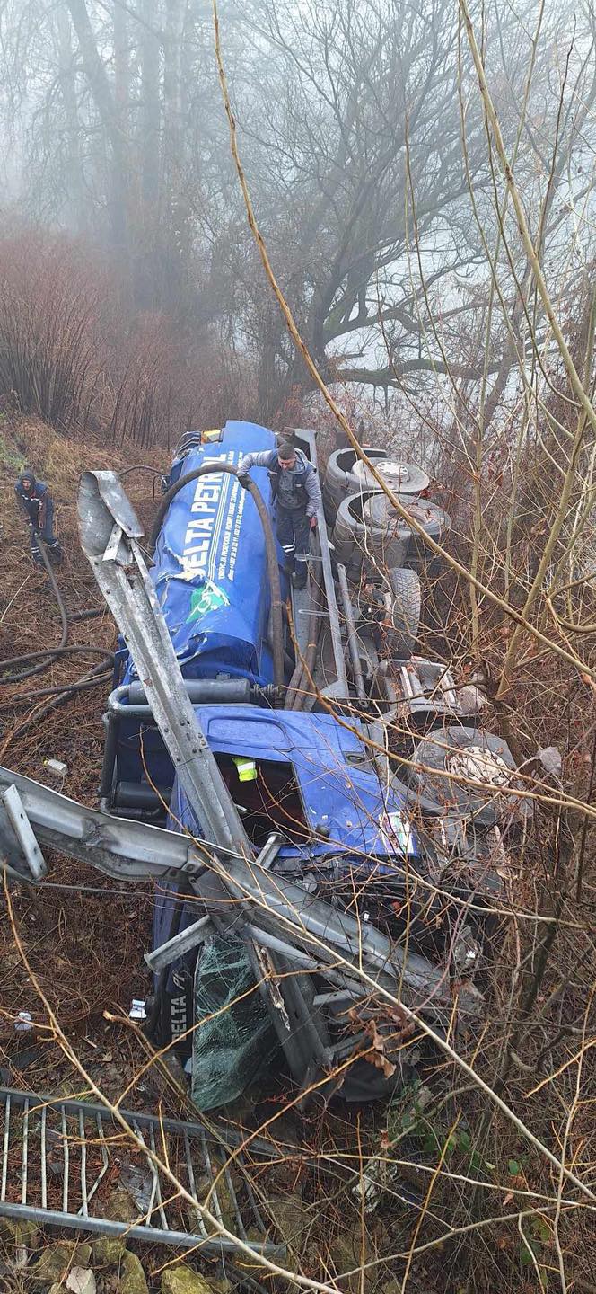 Uslijed nesreće, teretno vozilo je sletjelo u provaliju pored puta, a prema tvrdnjama nadležnih povrijeđenih osoba nije bilo.