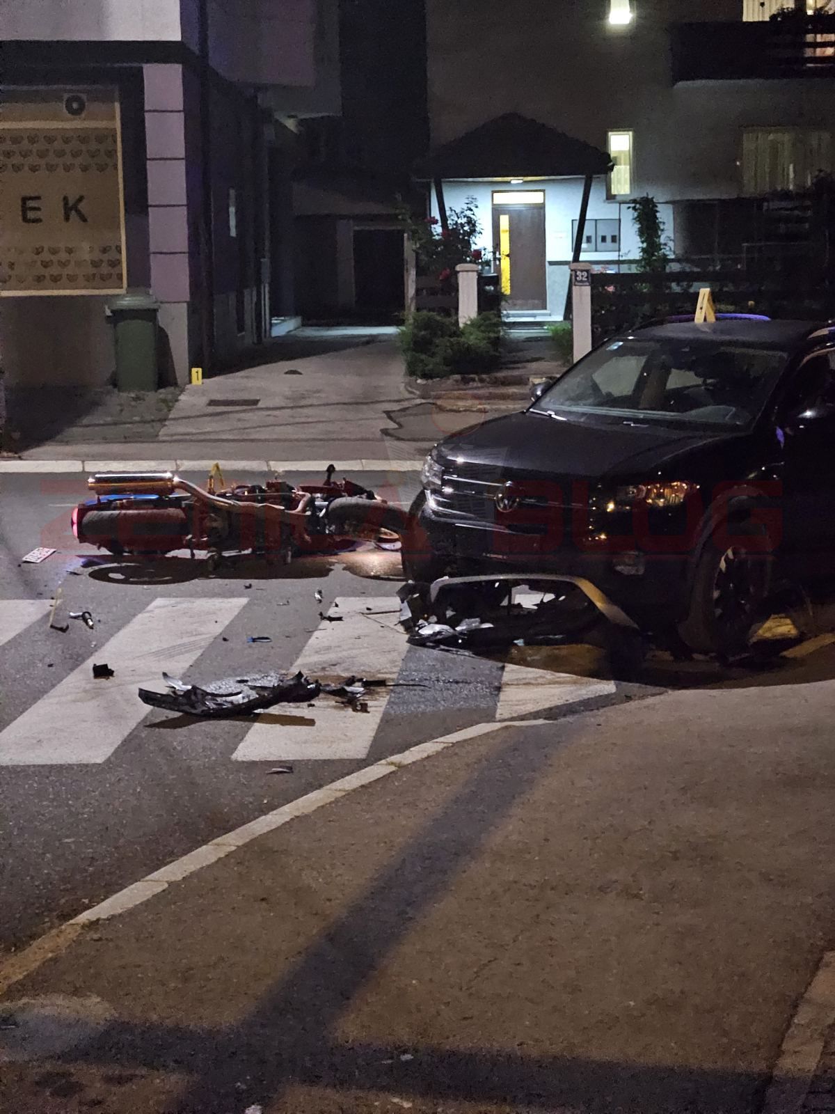 U nesreći koja se dogodila nedaleko od priključenja ove ulice na GGM, oko 20.45, došlo je do direktnog sudara motocikla, sa putničkim automobilom T-Roc VW.