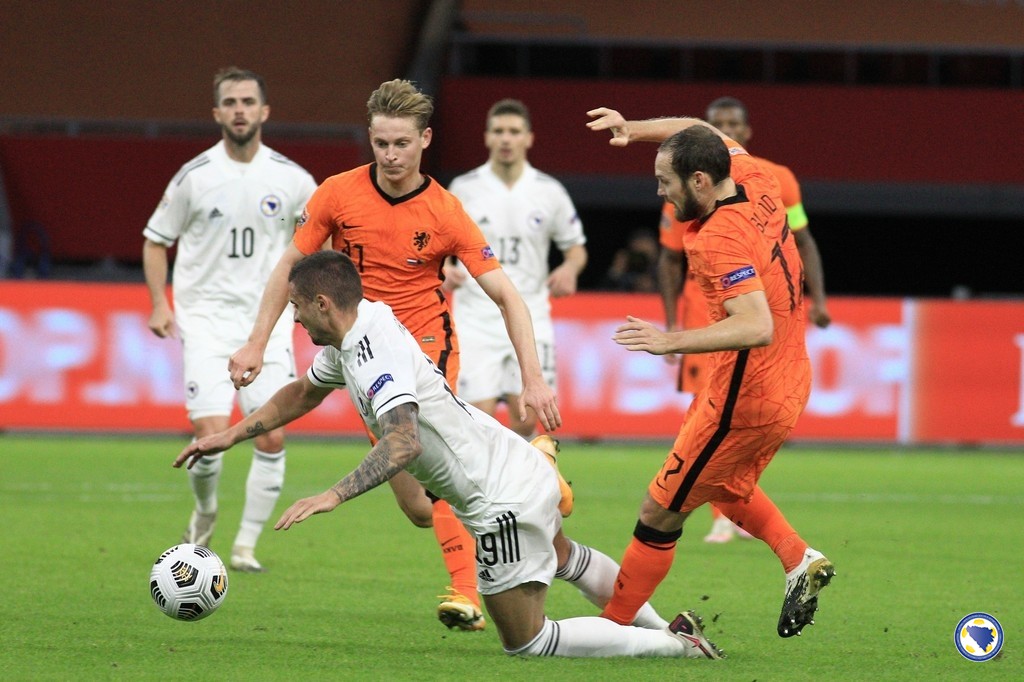 „A“ reprezentacija Bosne i Hercegovine poražena je večeras na na Johan Cruijff Areni u Amsterdamu od Nizozemske sa 1:3 u susretu petog kola grupe 1 UEFA A Lige nacija.