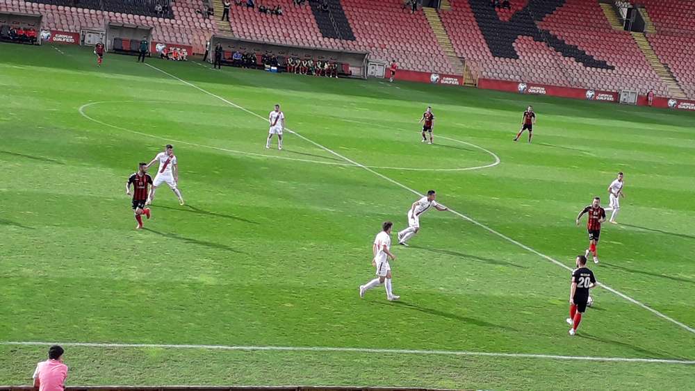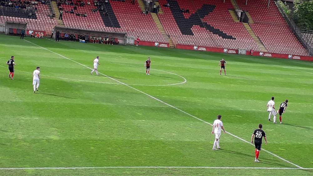 -27.minut, Kadušić centrira sa lijeve strane, Stanić šutira glavom sa peterca pored gola iz povoljne pozicije.