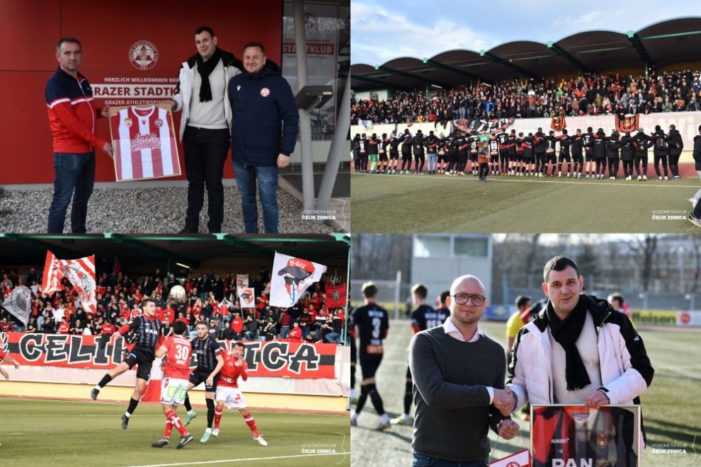 FOTO: NK Čelik- Hvala domaćinima i navijačima! Da se osjećamo kao kod kuće, obezbijedili su nam to naši najvjerniji navijači u dalekom Grazu. ⚫️