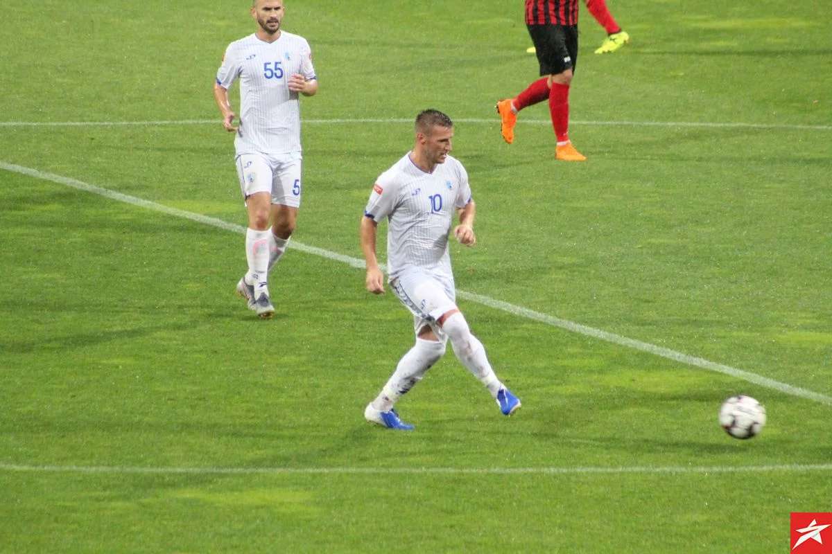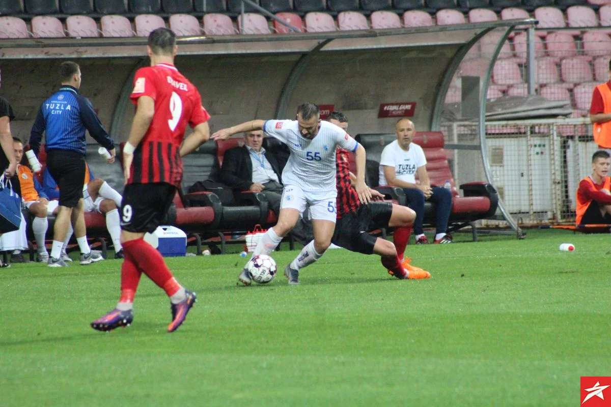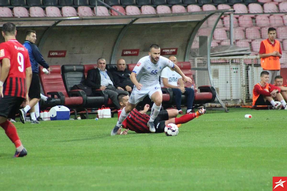 Najbolju šansu u prvom poluvremenu domaći imaju preko Dilavera u 43. minuti. Grahovac ga je uposlio, a ovaj sa pet metara ne uspijeva pogoditi mrežu Tuzle. Prvo poluvrijeme je završeno šansom za goste. Kojić je pokušao sa sedam metara glavom, no nije bio precizan i na odmor se otišlo s nepopularnih 0:0.