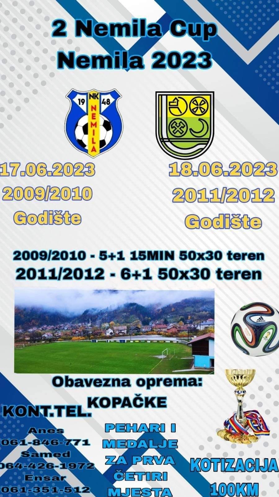 Proteklog vikenda, 17. i 18. 6.2023.godine, na stadionu novog drugoligaša NK Nemila odigran je dvodnevni malonogometni turnir “2.Nemila Cup“ 2023. za pionire i predpionire.