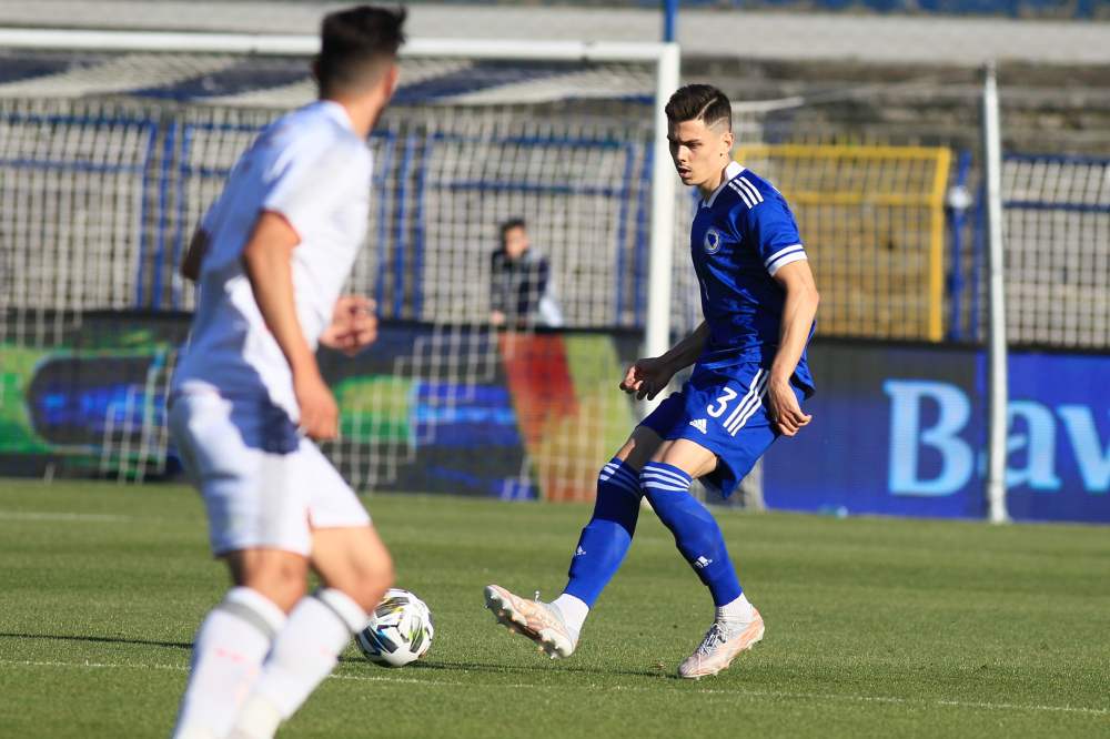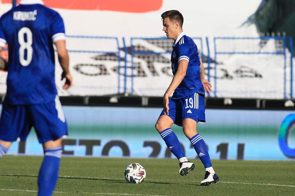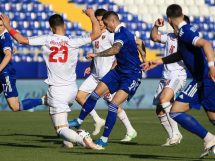 Hadžiahmetović u 90′ izvodi korner sa desne strane, a Luka Menalo sa peterca nije bio precizan.