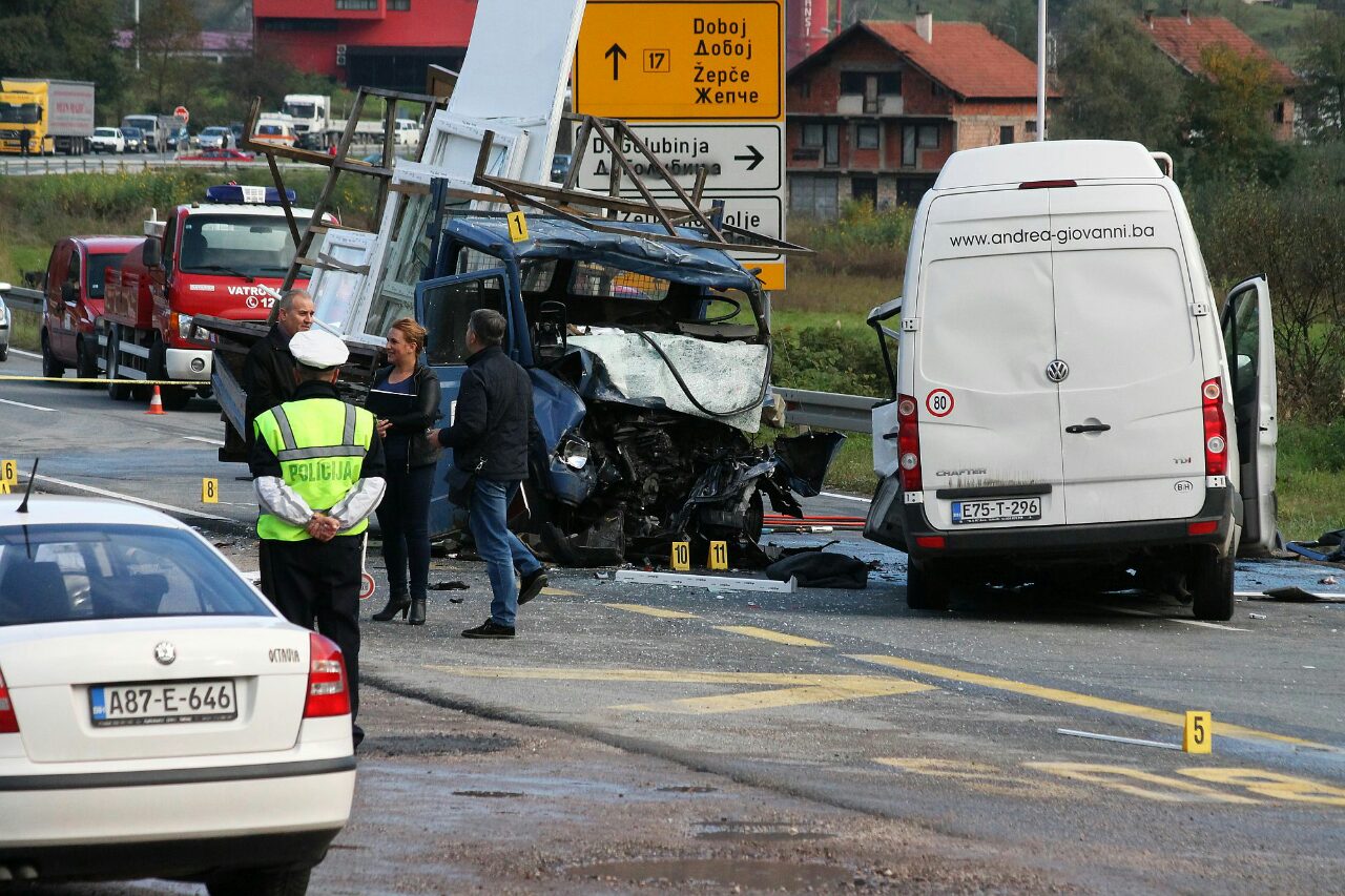 U saobraćajnoj nesreći učestvovali su VW kombi i teretno vozilo marke Mercedes. Od zadobijenih povreda na licu mjesta poginuli su vozač kombija (V.M) iz Čitluka i suvozač u terencu Mercedes (H.V) iz Maglaja.