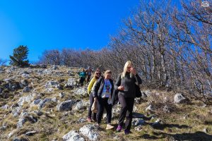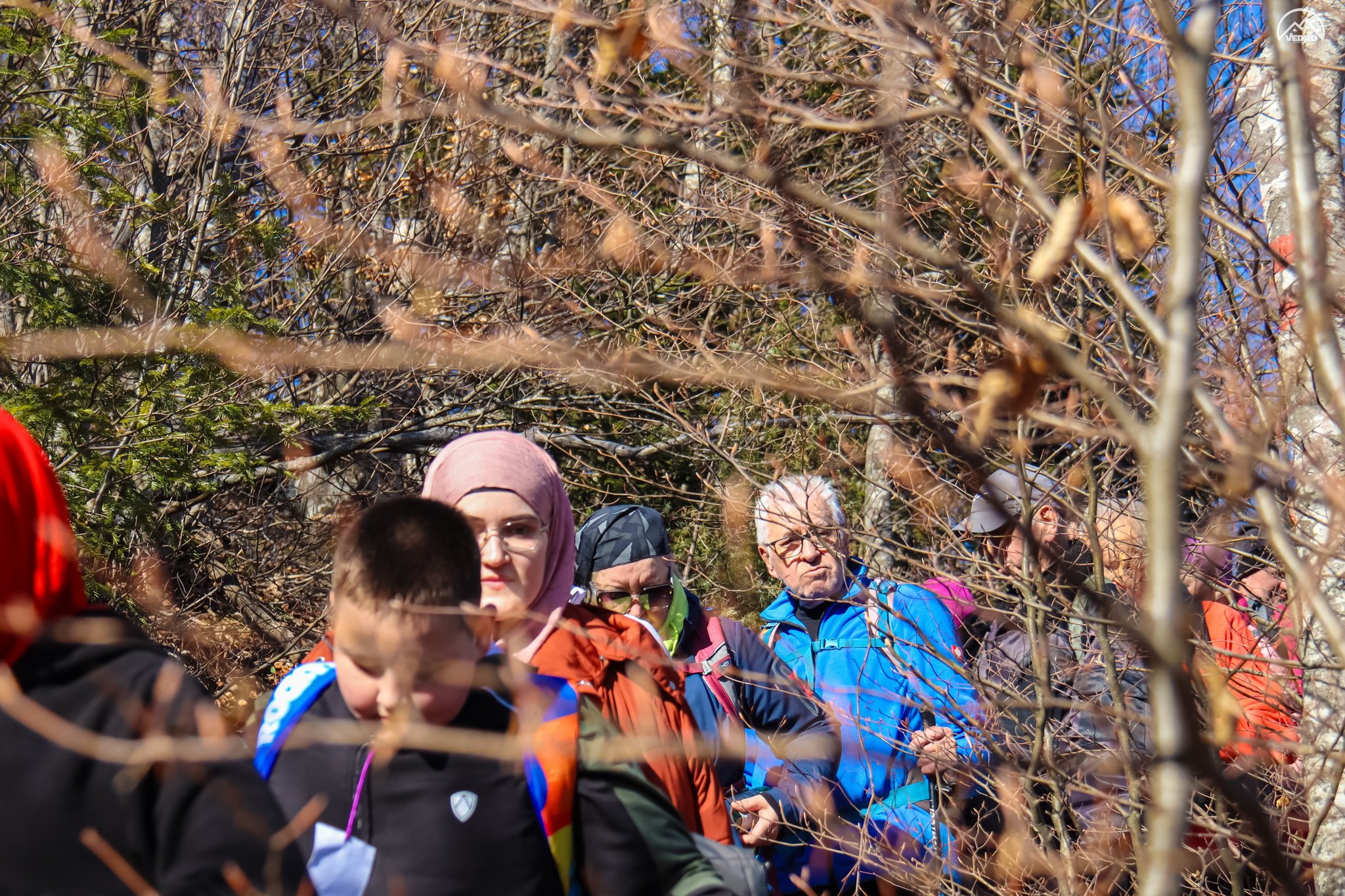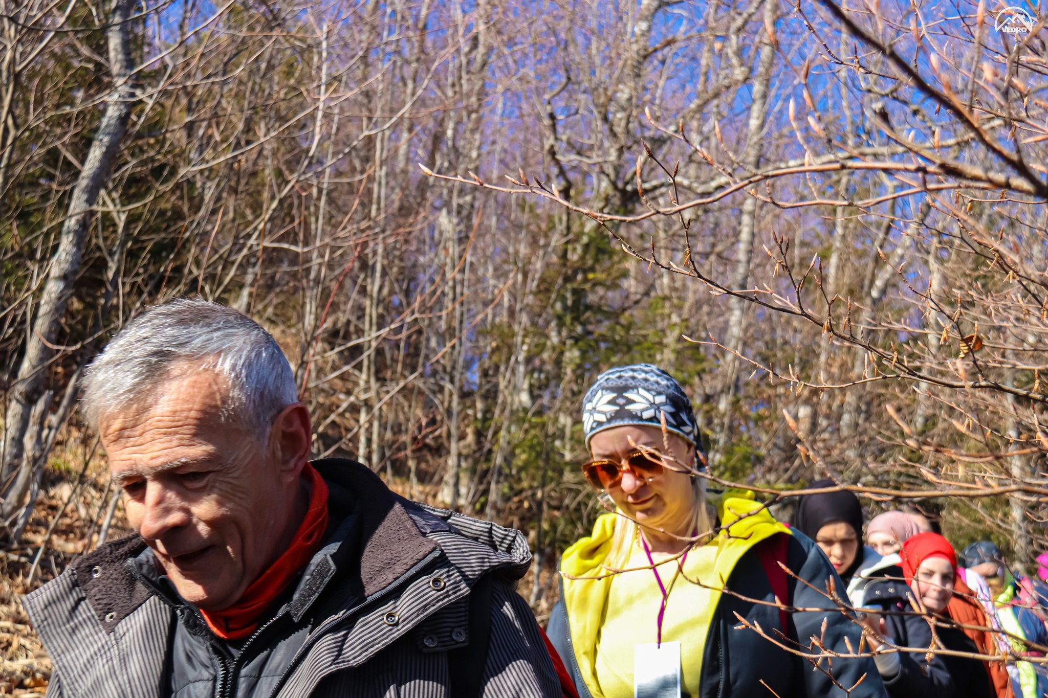 Početak puta vodio nas je makadamskom cestom, a zatim smo se odvojili na planinarsku stazu koja je prvo prolazila kroz livadu, a potom ulazila u šumu. Tu je počeo uspon. Učesnici su se zagrijavali, a sunce je s svakim korakom postajalo sve jače i toplije. Osjećali smo se sve bolje, a naša uživanja u prirodi postajala su još intenzivnija.