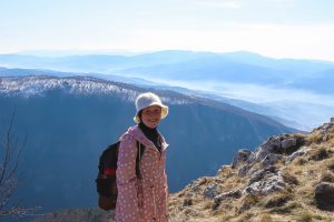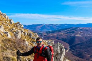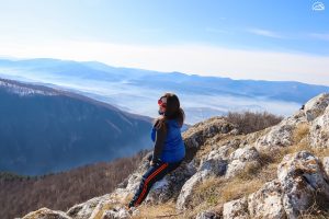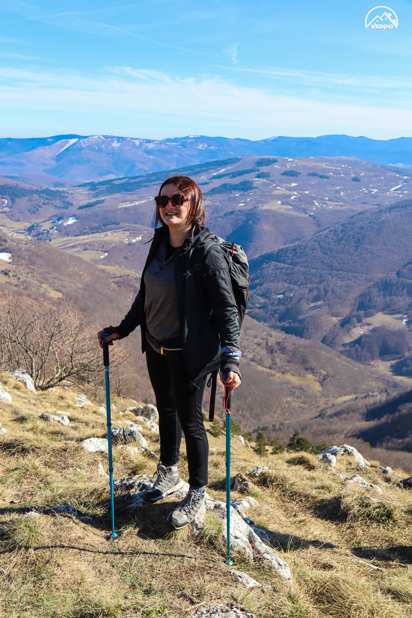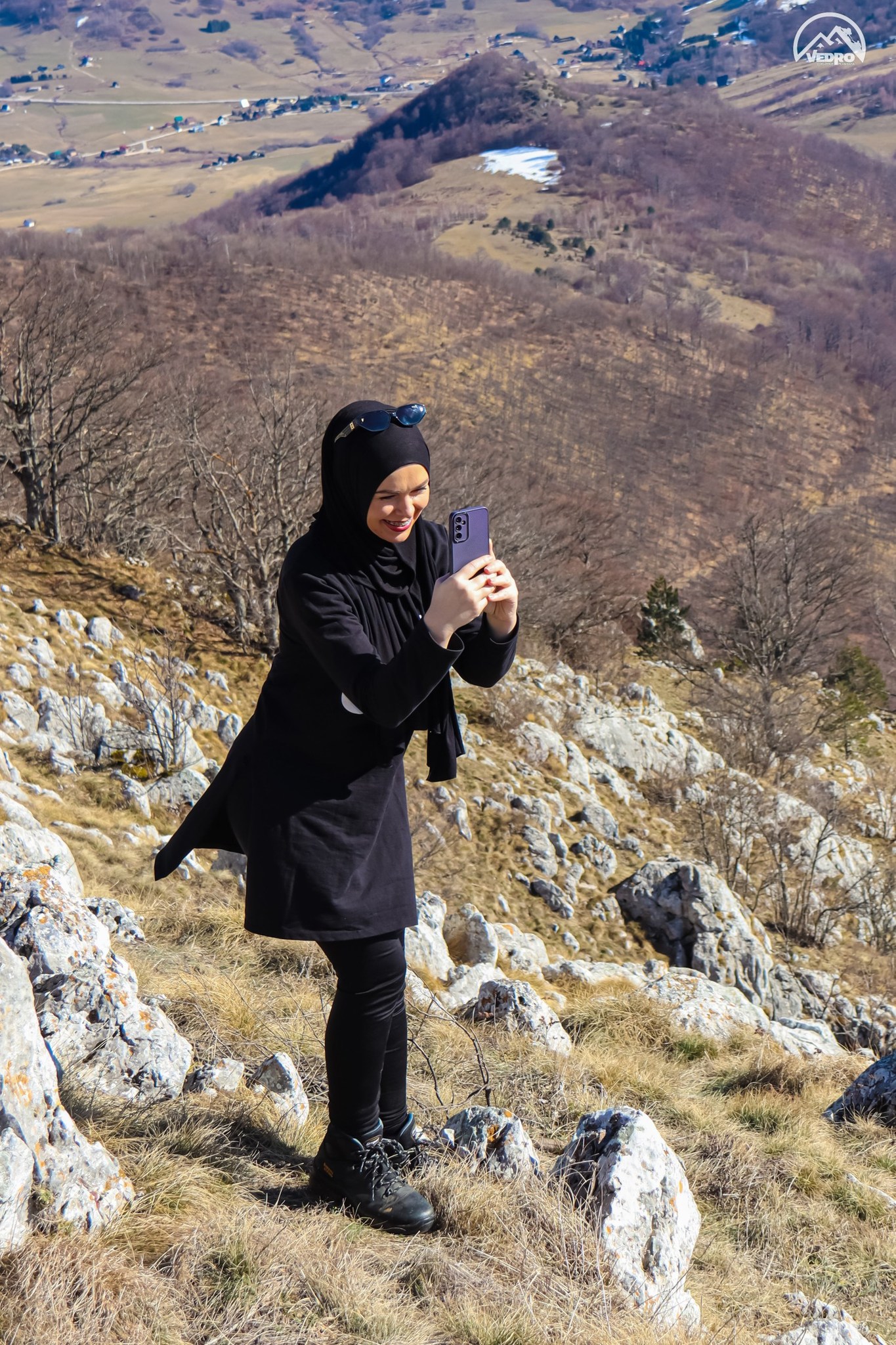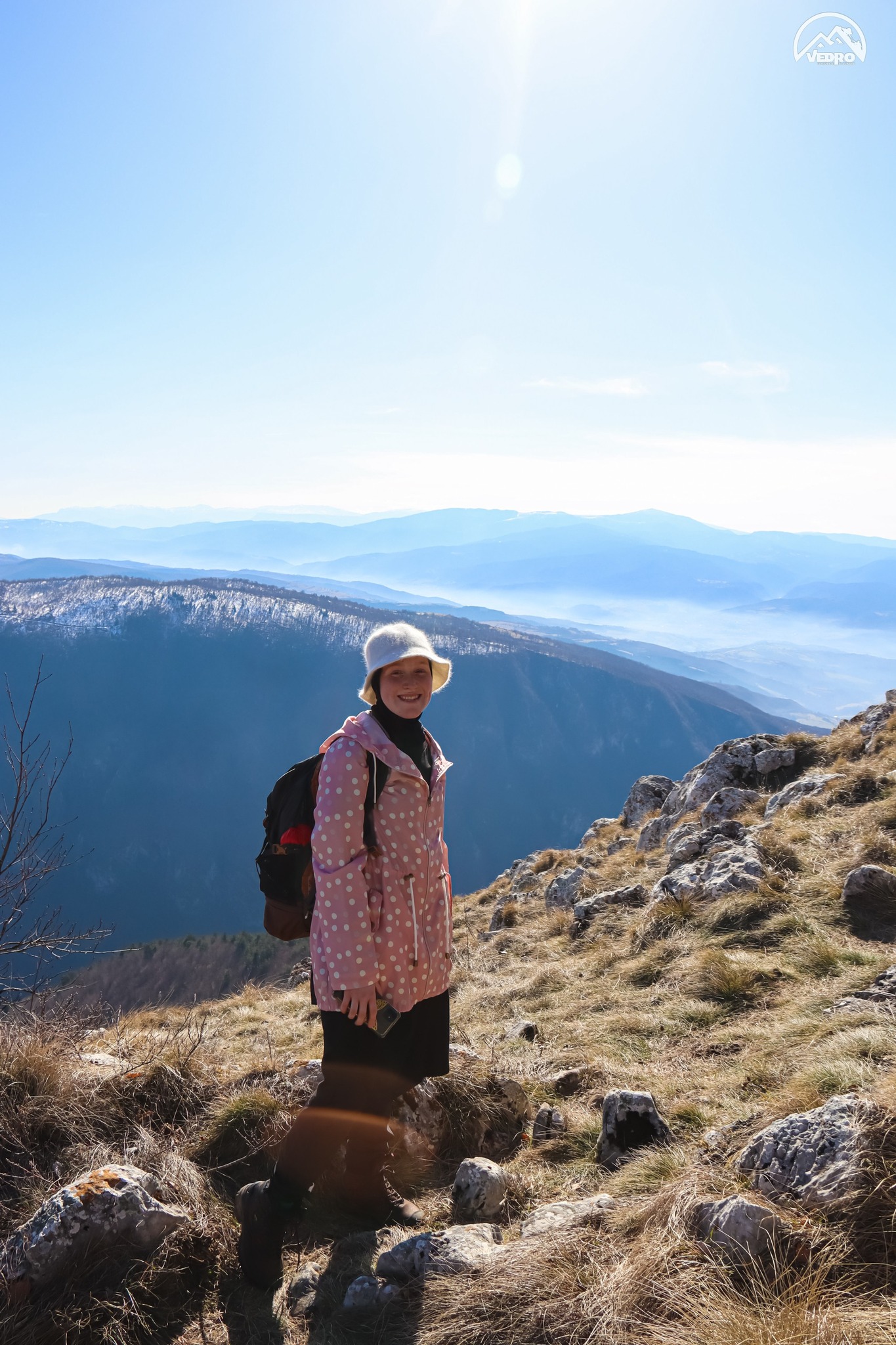 Odlučili smo se vratiti s druge strane, nastavljajući grebenom prema podnožju, jer kao što kažu stari: “Ne valja se vraćati istim putem.” Planinari, uvijek traže načine da uživaju i istražuju novu ljepotu planine. Povratak je bio lagan i opuštajući, a i razgovori su tekli glatko, za razliku od uspona kada je koncentracija bila na disanju. Vjetar je povremeno intenzivirao, ali to nas nije spriječilo da nastavimo uživati u svemu što nam je priroda pružala čak primijetimo da se i na horizontu sumaglica izbistrila.
