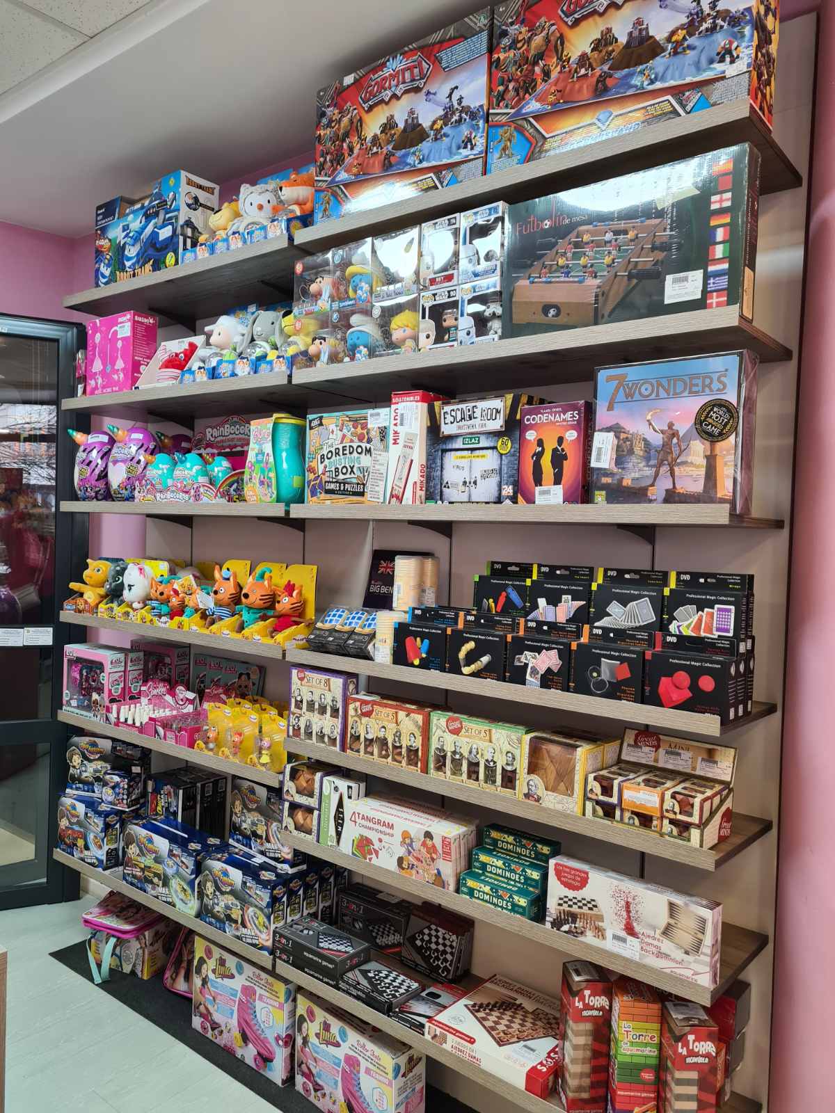 Prilagodbom prostora značajno je proširena ponuda igračaka poznatih brendova, kao što su Rainbocorns, Miraculous, Wissper, Super Wings, Cocomelon, Spin fighters, Among us i mnogi drugi. Proširena je i ponuda knjiga izdavača Puls i Stilus, te slikovnica, bojanki i enciklopedija za najmlađe. U ponudi su i društvene igre za sve uzraste i generacije.
