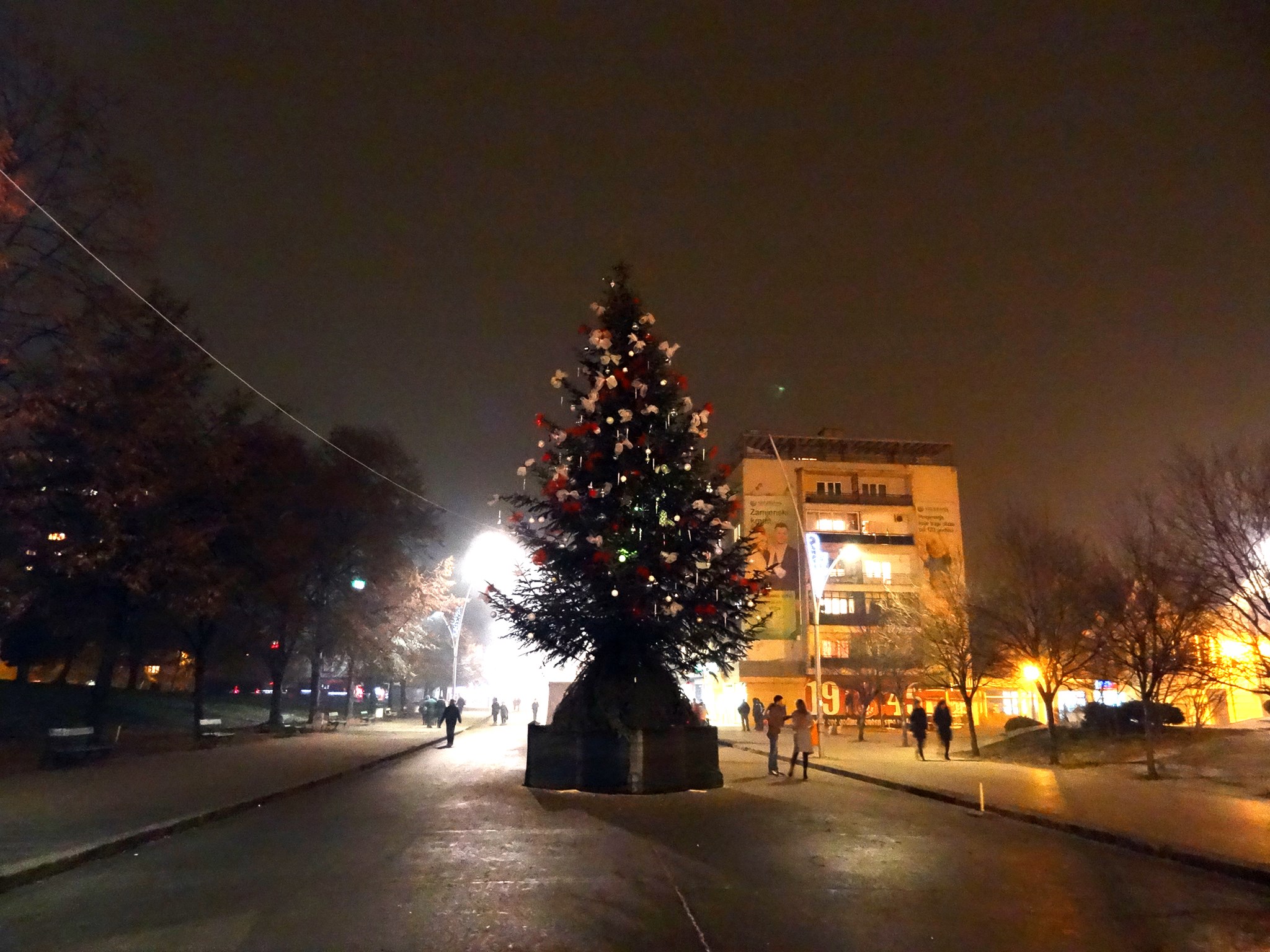 FOTO: novogodišnja jelka i dekor već spremni za cjelodnevni program 31. decembra – Novogodišnja jelka, koja će biti središte obilježavanja Nove godine na Trgu Alije Izetbegovića, “u funkciji” je, nakon što je okićena i osvijetljena. Nabavku i kićenje su finansirali zenički privrednici, koje je predvodio Mladen Perić “Pero”.