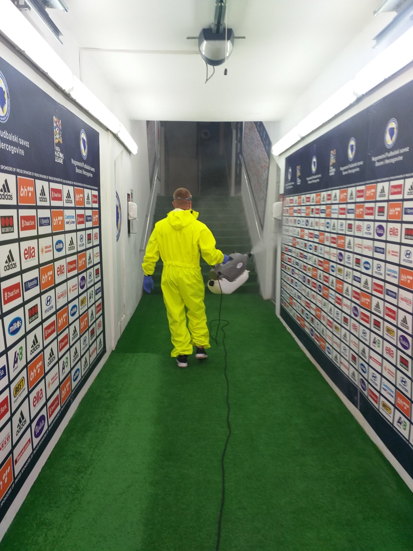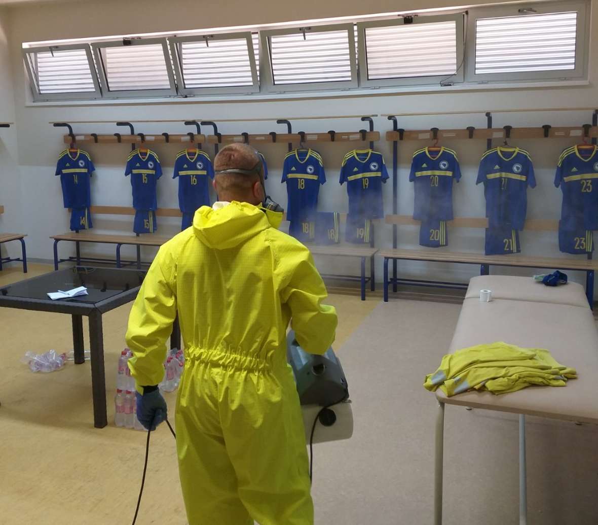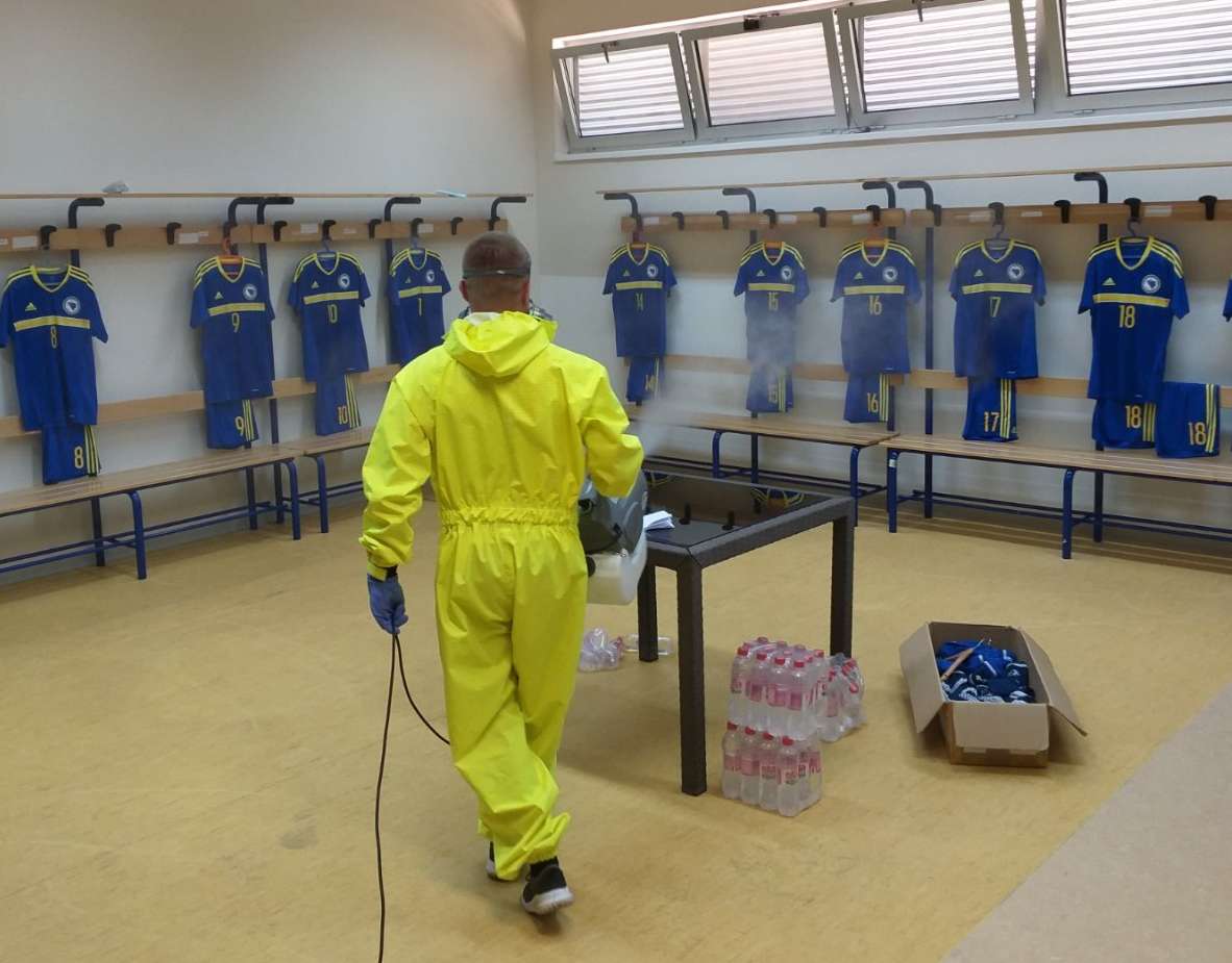 – Još prije desetak dana izrađeni su Plan i Protokol mjera profesionalne dezinfekcije, u više navrata na svim ključnim lokalitetima, uz korištenje dezinekcionih sredstava koja se nalaze na listi dozvoljenih hemijskih sredstava nadležnih organa Evropskog centra za prevenciju i kontrolu bolesti (ECDC). Svaki pojedinačni potez, mjera, korištena oprema poput kombinezona, HTZ opreme, maski sa filterima, motornih i ručnih uređaja za vršenje dezinfekcije, strogo se kontroliraju, prate, evidentiraju. Mogu izraziti zadovoljstvo što su sve naše preporuke, savjeti shvaćeni maksimalno ozbiljno od strane rukovodilaca Centra i ljudi iz Saveza, a to i nije bio problem jer su identični onome što od njih traže međunarodne nogometne asocijacije, kaže načelnik Službe za DDD poslove Instituta Admir Gluhić.