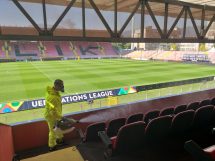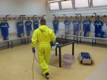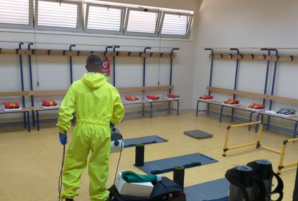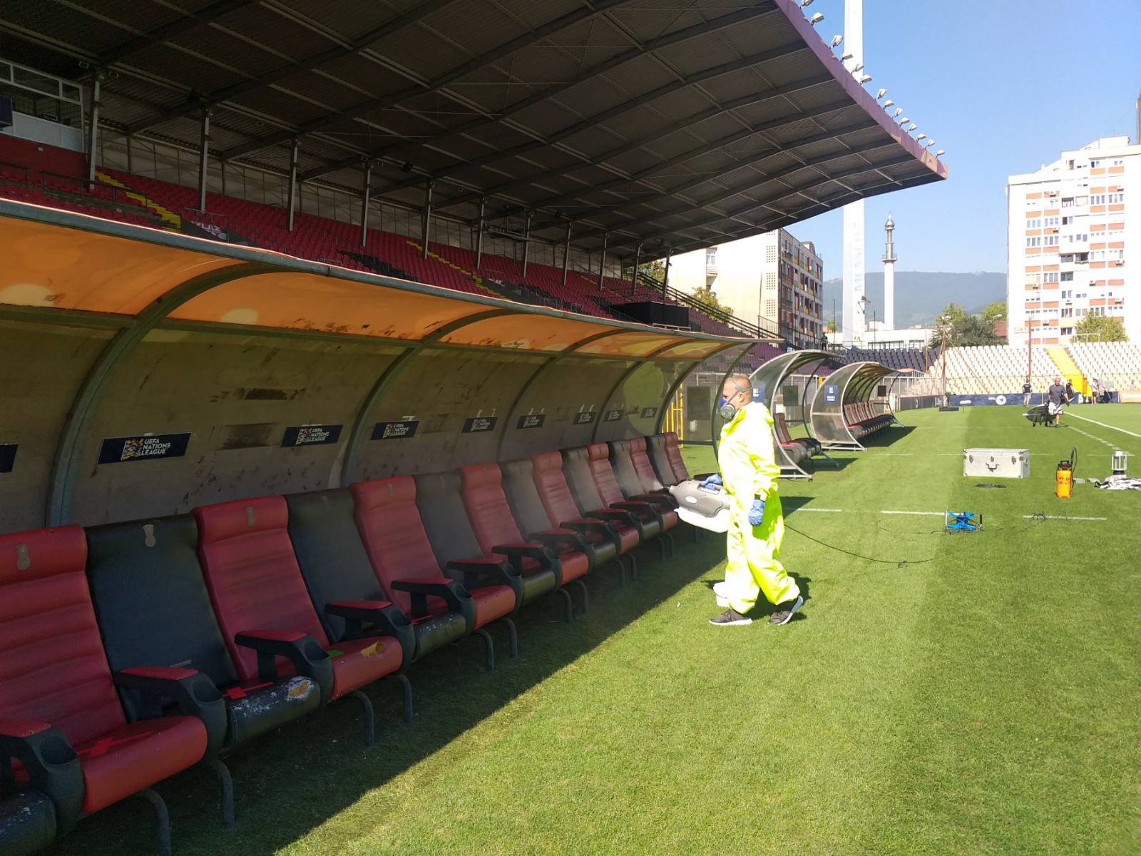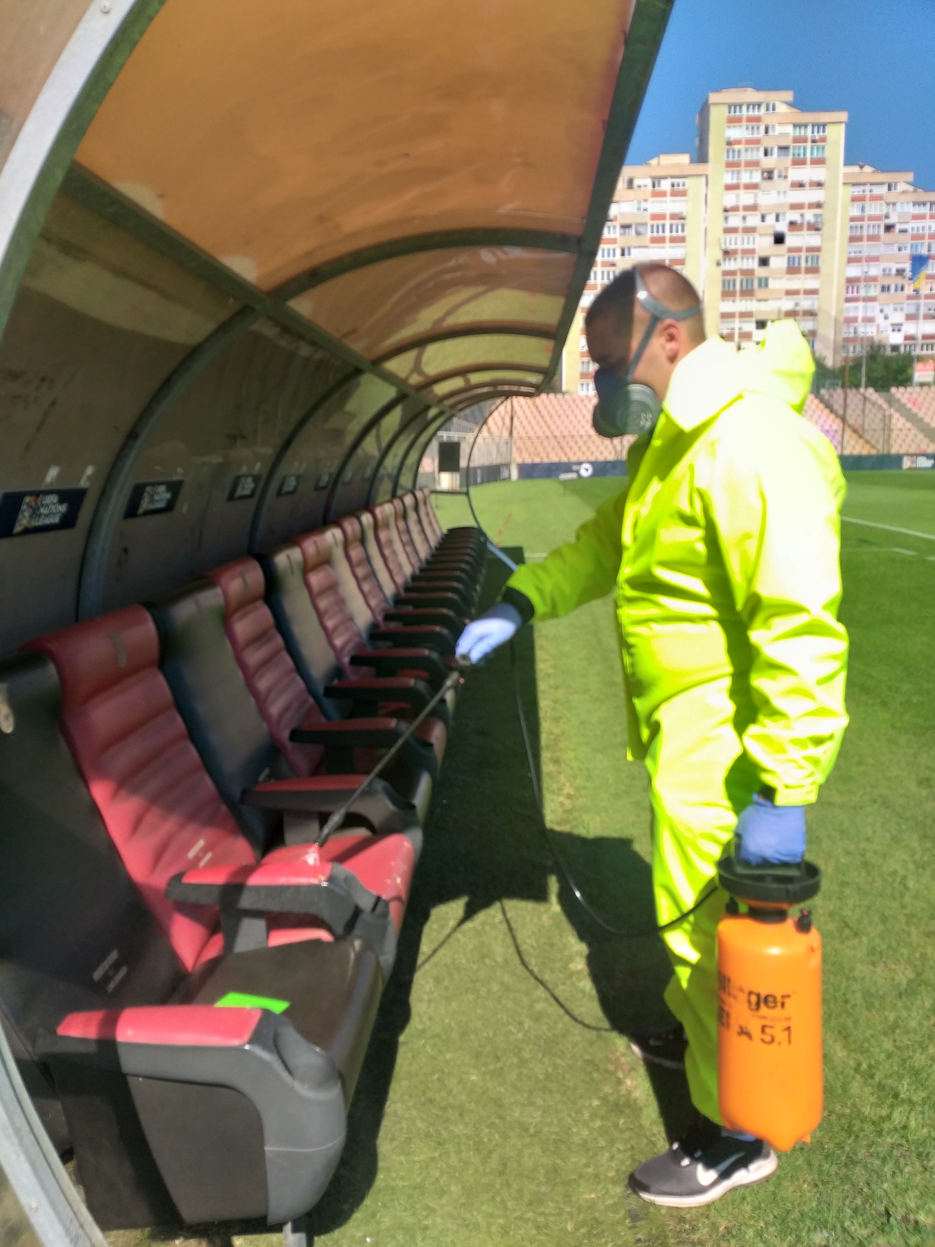 – Još prije desetak dana izrađeni su Plan i Protokol mjera profesionalne dezinfekcije, u više navrata na svim ključnim lokalitetima, uz korištenje dezinekcionih sredstava koja se nalaze na listi dozvoljenih hemijskih sredstava nadležnih organa Evropskog centra za prevenciju i kontrolu bolesti (ECDC). Svaki pojedinačni potez, mjera, korištena oprema poput kombinezona, HTZ opreme, maski sa filterima, motornih i ručnih uređaja za vršenje dezinfekcije, strogo se kontroliraju, prate, evidentiraju. Mogu izraziti zadovoljstvo što su sve naše preporuke, savjeti shvaćeni maksimalno ozbiljno od strane rukovodilaca Centra i ljudi iz Saveza, a to i nije bio problem jer su identični onome što od njih traže međunarodne nogometne asocijacije, kaže načelnik Službe za DDD poslove Instituta Admir Gluhić.