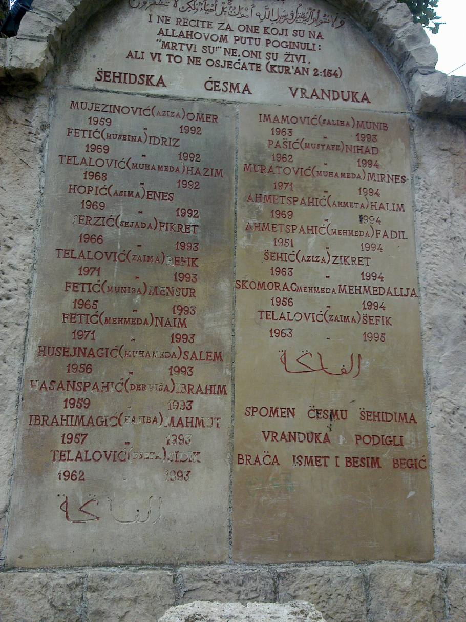 Iza ikindije namaza u džamiji Sultana Mehmeda II El-Fatiha u Vranduku proučen je Ja’sin i dove za šehide MZ Vranduk kod šehidske česme u blizini vrandučke džamije, te posjeta mezarja šehida Varošišta i Vranduka.