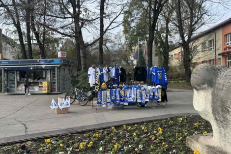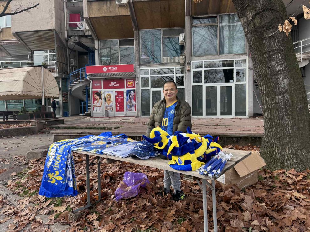 Zenica od samog jutra odiše u bojama Bosne i Hercegovine, a na ulicama ovog grada već vidimo prodavače rekvizita naše reprezentacije.
