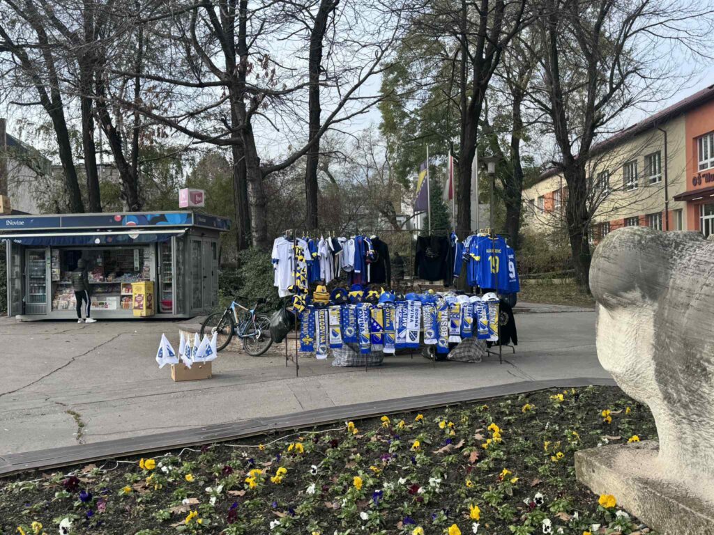Zenica od samog jutra odiše u bojama Bosne i Hercegovine, a na ulicama ovog grada već vidimo prodavače rekvizita naše reprezentacije.