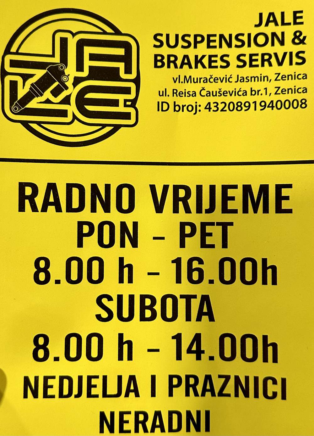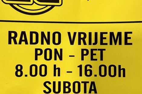 Radno vrijeme servisa: Ponedjeljak-Petak 08-16h; Subota 08-13h; Nedjeljom ne radimo.