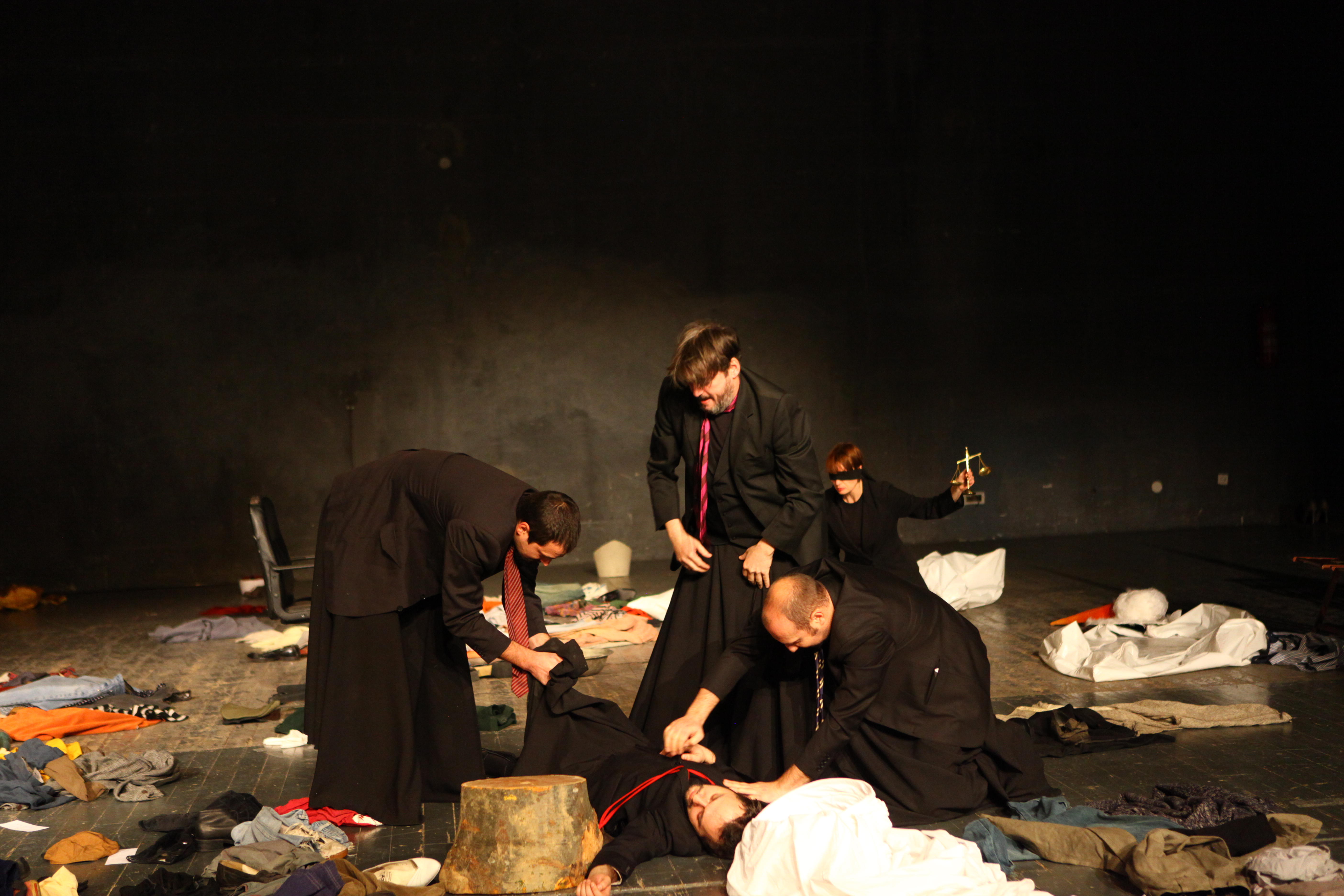 U predstavi igraju glumica Selma Mehanović i glumci Enes Salković i Saša Handžić iz ansambla Bosanskog narodnog pozorošta Zenica, te glumci angažovani od Kulturnog centra Novi Pazar, beogradski glumci Boris Milivojević i Vahid Džanković.