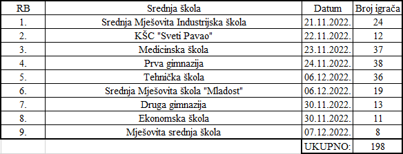 -Ovo je bilo deveto, te i posljednje prvenstvo srednjih škola. Ukupno je na prvenstvima srednjih škola učestvovalo 198 igrača! Ukoliko ih saberemo sa 507 djece iz osnovne škole, ukupno imamo 705 igrača na prvenstvima svojih škola! Možemo slobodno reći da je šah u Zenici pobijedio! -, ponosno ističu u ŠK Čelik.