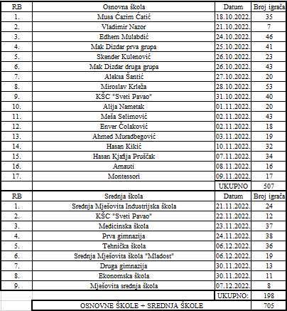 Spisak igrača potrebno je dostaviti do 13.12.2022. godine (utorak).