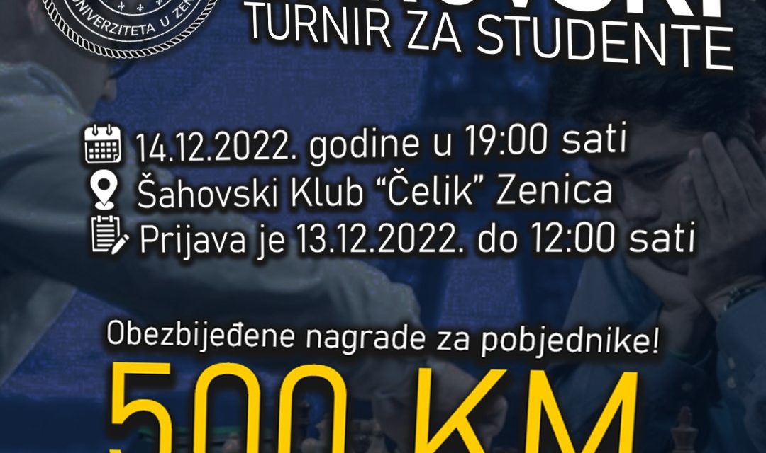 Obavještavamo Vas da će 14.12.2022. godine (srijeda) biti održano Prvenstvo Univerziteta Zenice u šahu.