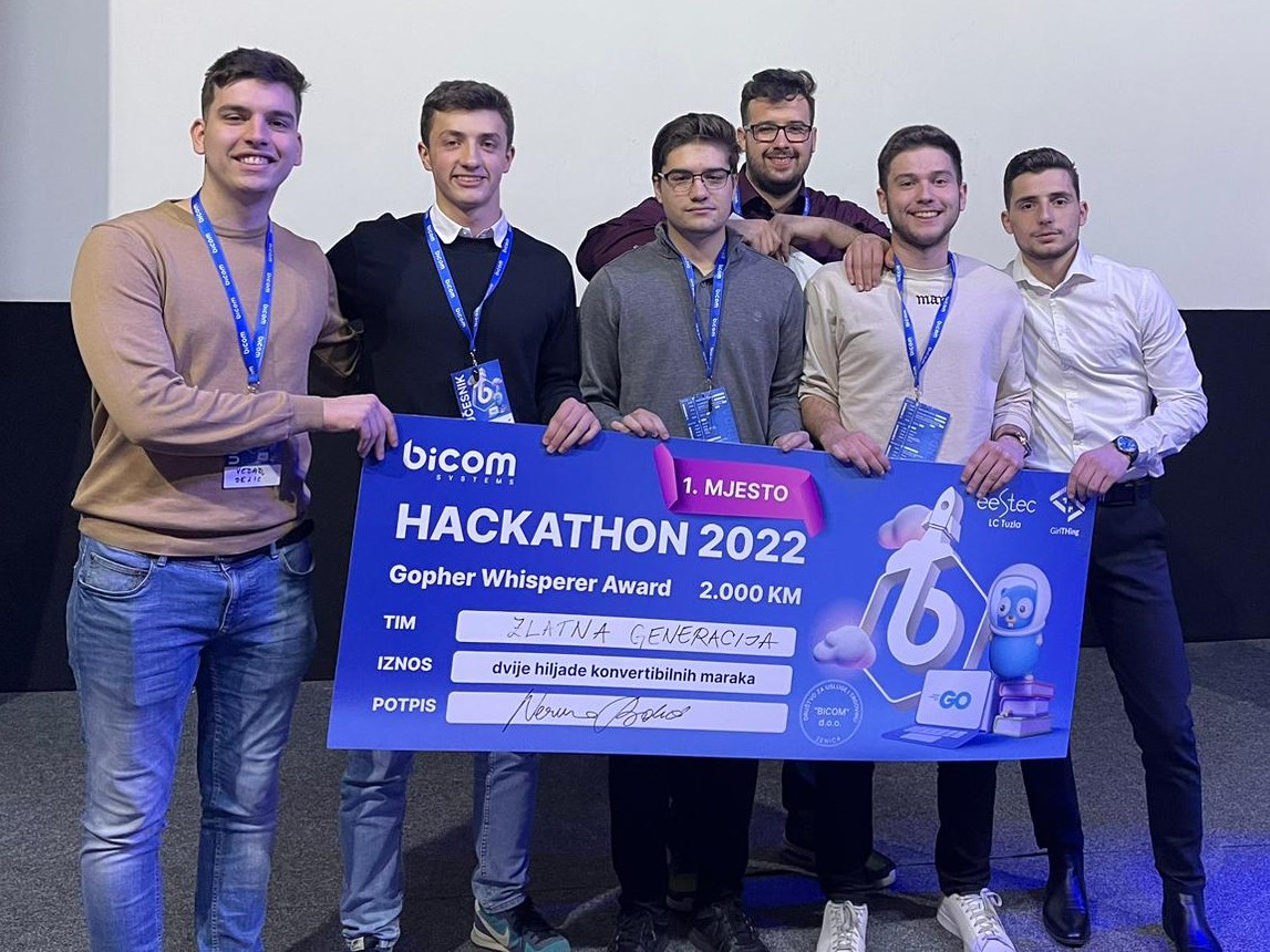 Tim pod imenom “Zlatna generacija”, koji čini pet studenata prve godine studijskog programa Softversko inženjerstvo Politehničkog fakulteta, osvojio je prvo mjesto na hackathonu u Tuzli.