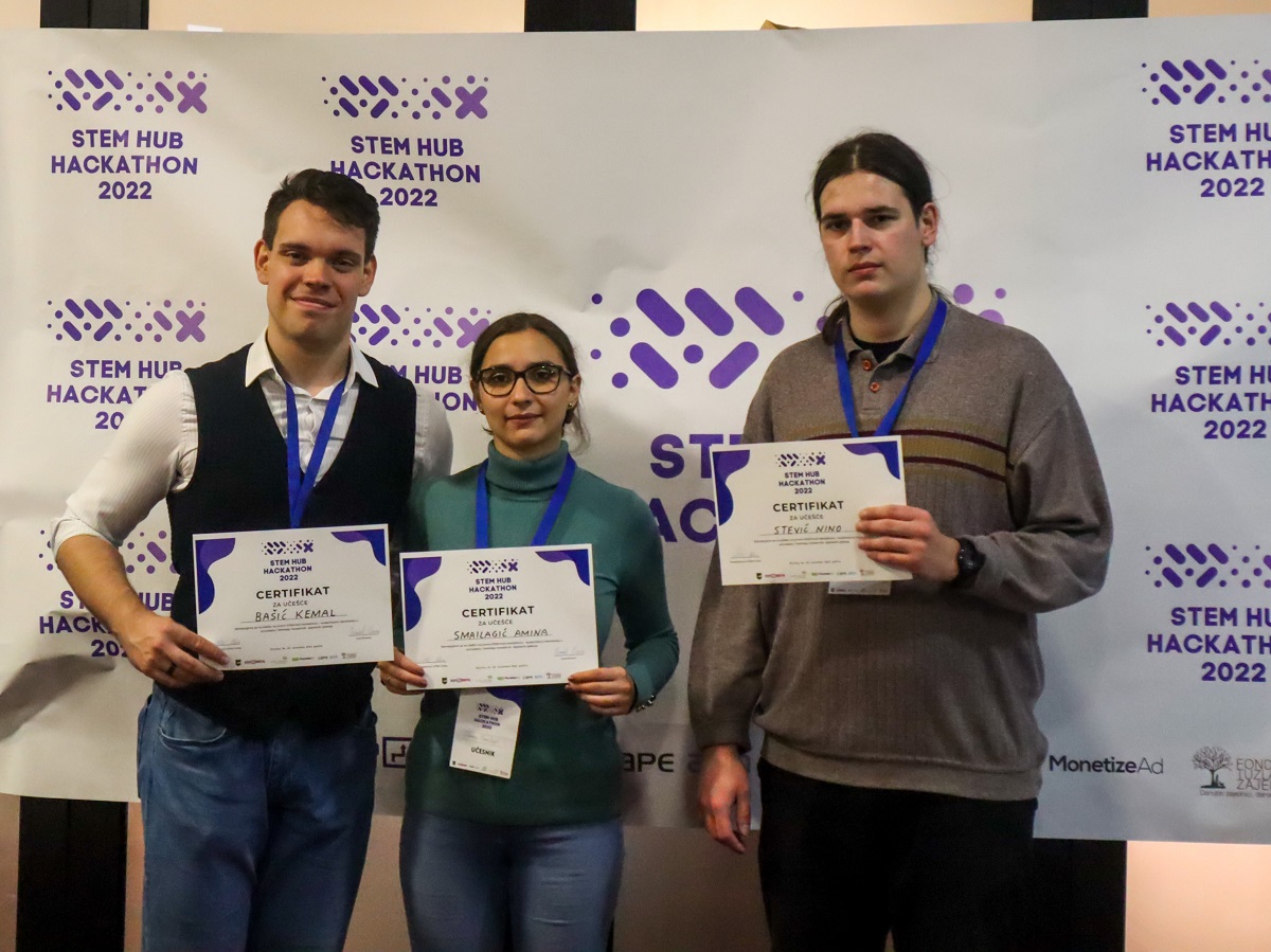 Članovi tima su studenti: Kemal Bašić, Amina Smailagić i Nino Stević. Na STEM HUB Hackathonu, koji je održan u Živinicama od 18. do 20. novembra 2022, osvojili su četvrto mjesto sa svojom aplikacijom C++ Village, računarskom igrom za učenje C++ programskog jezika. Iako nisu osvojili nagradu, možemo biti ponosni na naše studente jer su pokazali i znanje, i kreativnost i inovativnost.