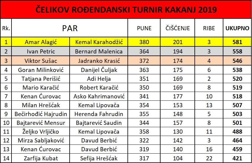 Nakon jako zanimljivih igara najkvalitetnijim se pokazao mladi par Amar Alagić i Kemal Karahodžić, igrači Rudara iz Kaknja, koji su oborili 581 čunj. Na drugom mjestu su, iz Posušja, sa oborenih 558 čunjeva Bernard Malenica i Ivan Petrić, dok su treće mjesto zauzeli Viktor Sušac (KK Mostar) i Jadranko Krasić (KK Brotnjo Čitluk) sa ukupno oborenih 546 čunjeva.