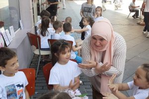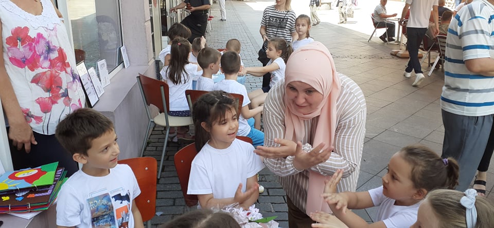 Gosti programa bila su djeca iz obdaništa “Pčelica” i “Sindibad”, koja su se danas upoznala sa sadržajem teta Nisvetine knjige “Leptir – priče o nevidljivim krilima” i njenih knjiga od platna.
