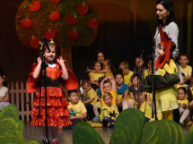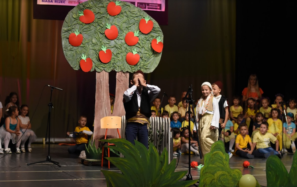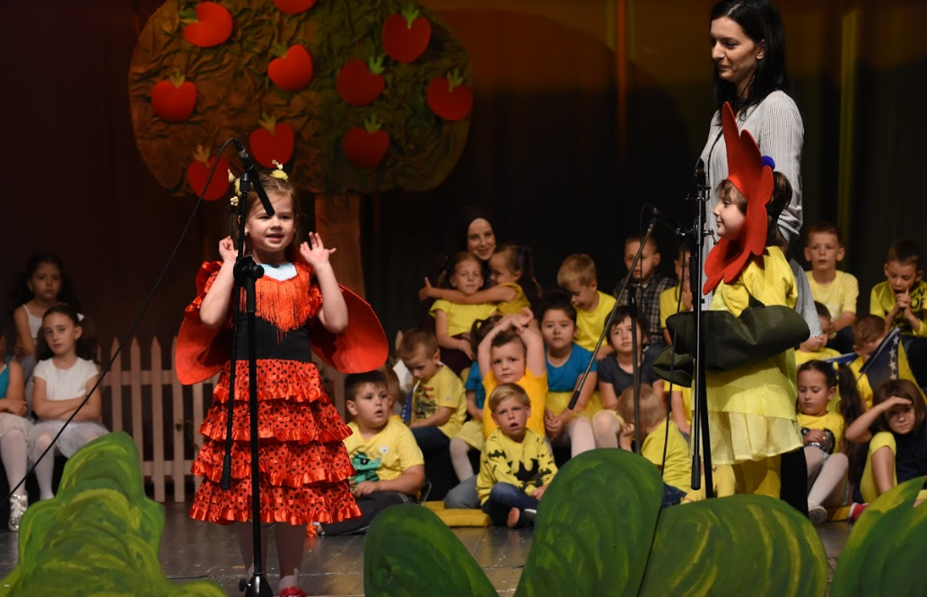 Starija vrtićka grupa je izvela veoma inovativan i humurističan igrokaz „Crvenkapa i vuk“, gdje se na šaljiv način prikazala obrnuta situacija u odnosu na standardnu „Crvenkapu“, jer se vuk boji strašne Crvenkape. Stariji vrtićanci su još izveli igrokaze „Kriva adresa“, „Učena sova“, recitacije „Bajram“, „Sladoled“, „Suncu je vruće“ i „Moja domovina“. Prezentirajući i upućujući na prave vrijednosti, prijateljstvo, zajedništvo i ljubav, horski su izveli pjesmu „U svijetu postoji jedno carstvo“ i odplesali pjesmu „Ljubav je kad te neko voli“.