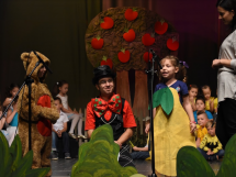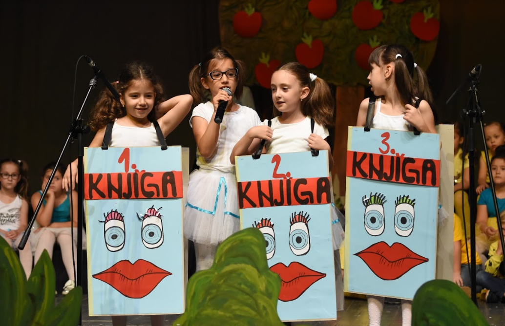 Publiku je do suza nasmijala izvedba igrokaza „Jabuka“ koji govori o komšijskim odnosima, a izveli su ga u narodnoj nošnji polaznici produženog boravka. Školarci su još izveli igrokaze „Najljepši cvijet“ i „Od korice do police“, plesnu tačku „Witch doctor“, recitaciju „Dječije nebo“, a horski su otpjevali pjesmu „Kad muzika svira“. Na ovaj način polaznici produženog boravka su proslavili svoje uspjehe u školi, te obilježili početak raspusta u okviru kojeg će imati drugačiji program u „Abakusu“, koji će biti usmjeren više na učenje kroz igru, igru i odmor.